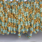Sea Blue Apatite 2.5mm Faceted Rounds Rosary Chain Sterling Silver with Gold Plating Double Bead Wire Wrap Chain by the Foot