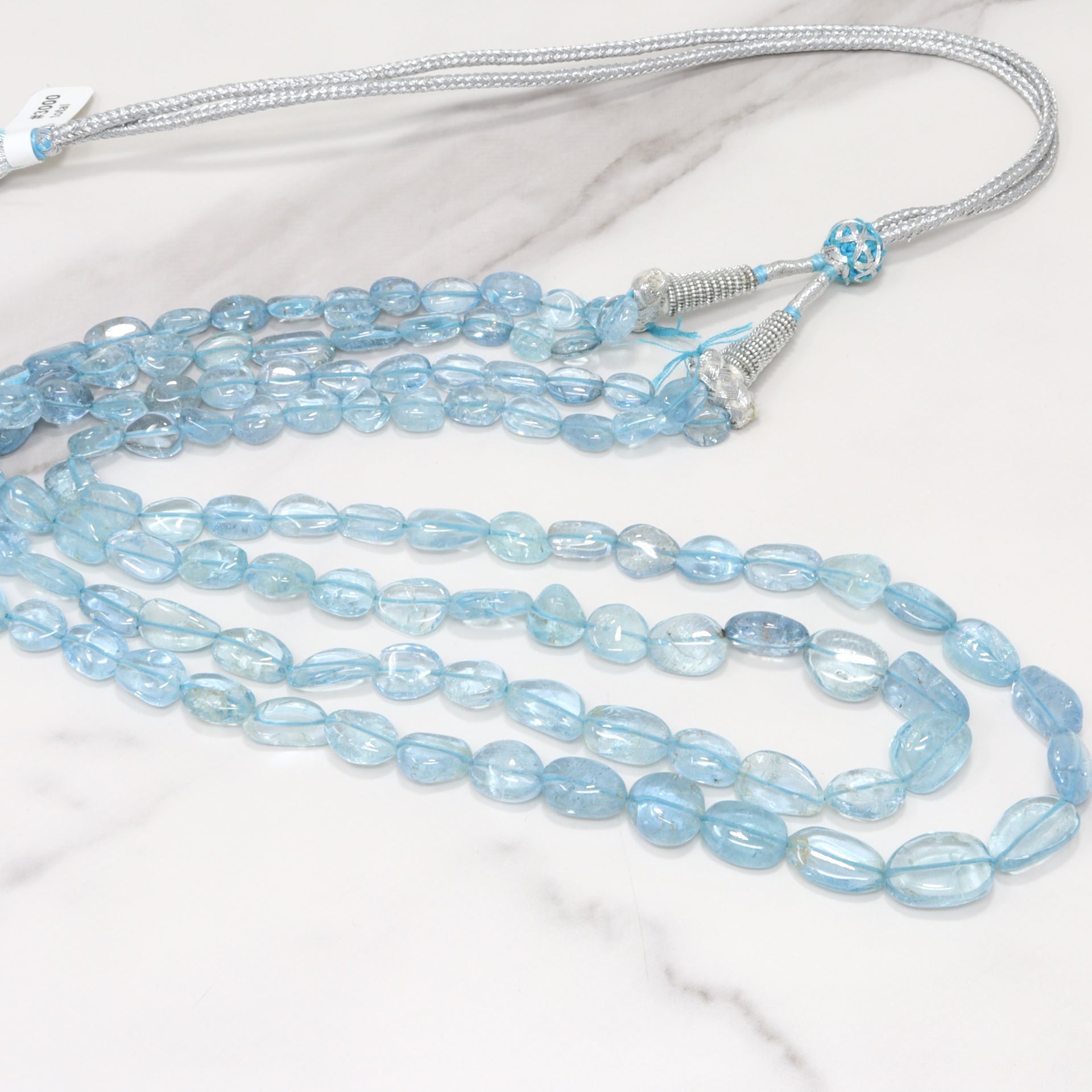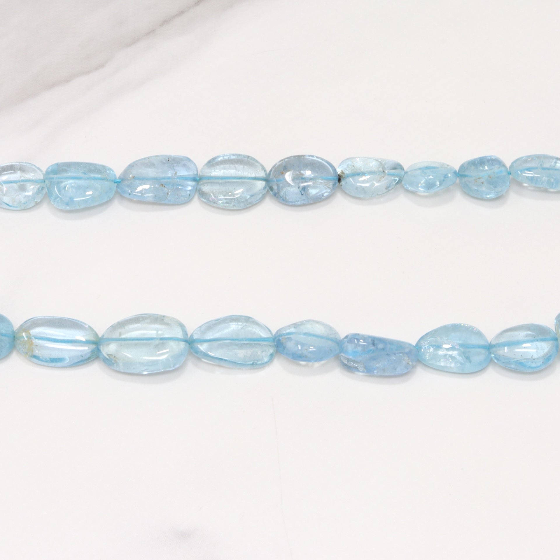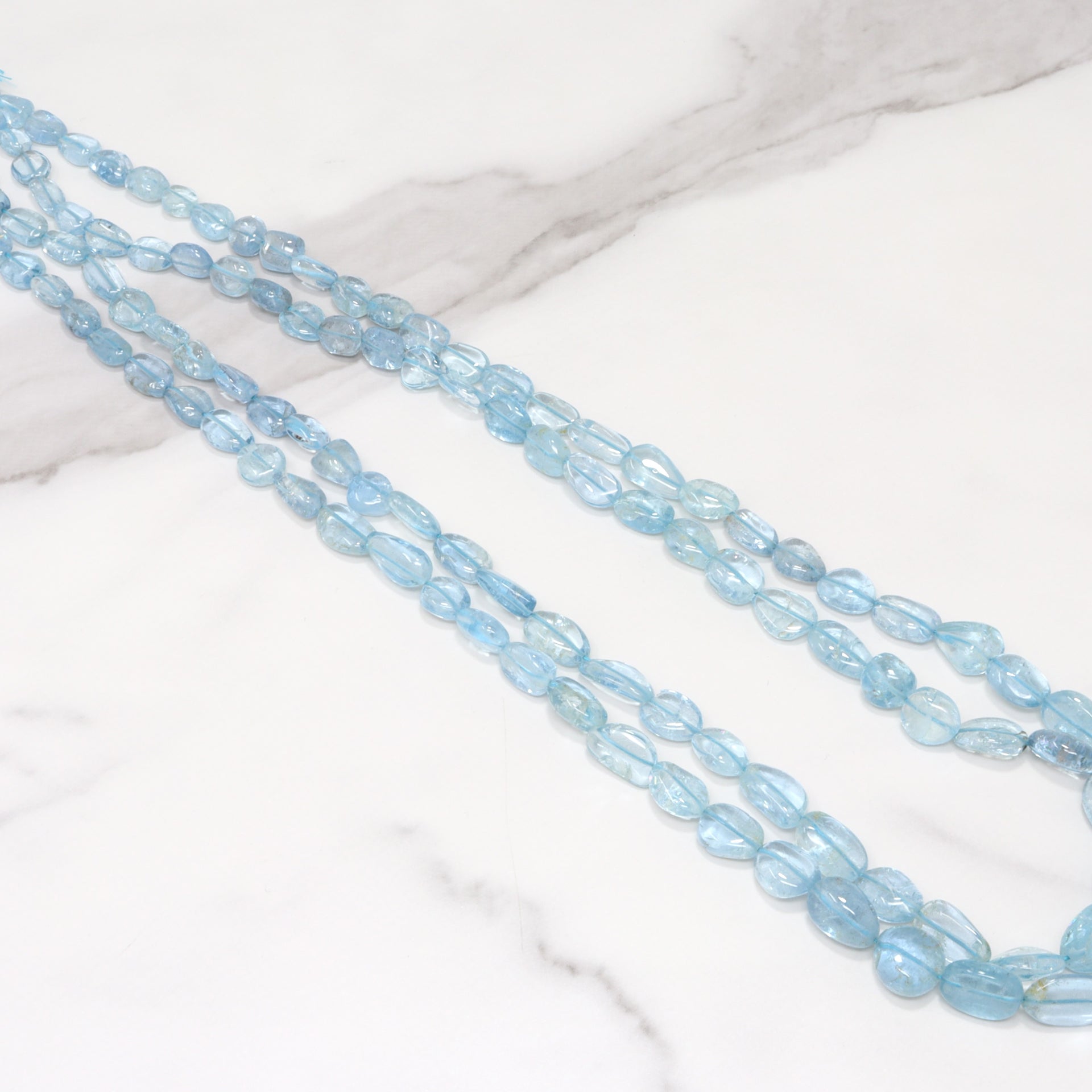 Blue Aquamarine 9x7mm - 11x9mm Smooth Nuggets 2 Strand Bead Necklace