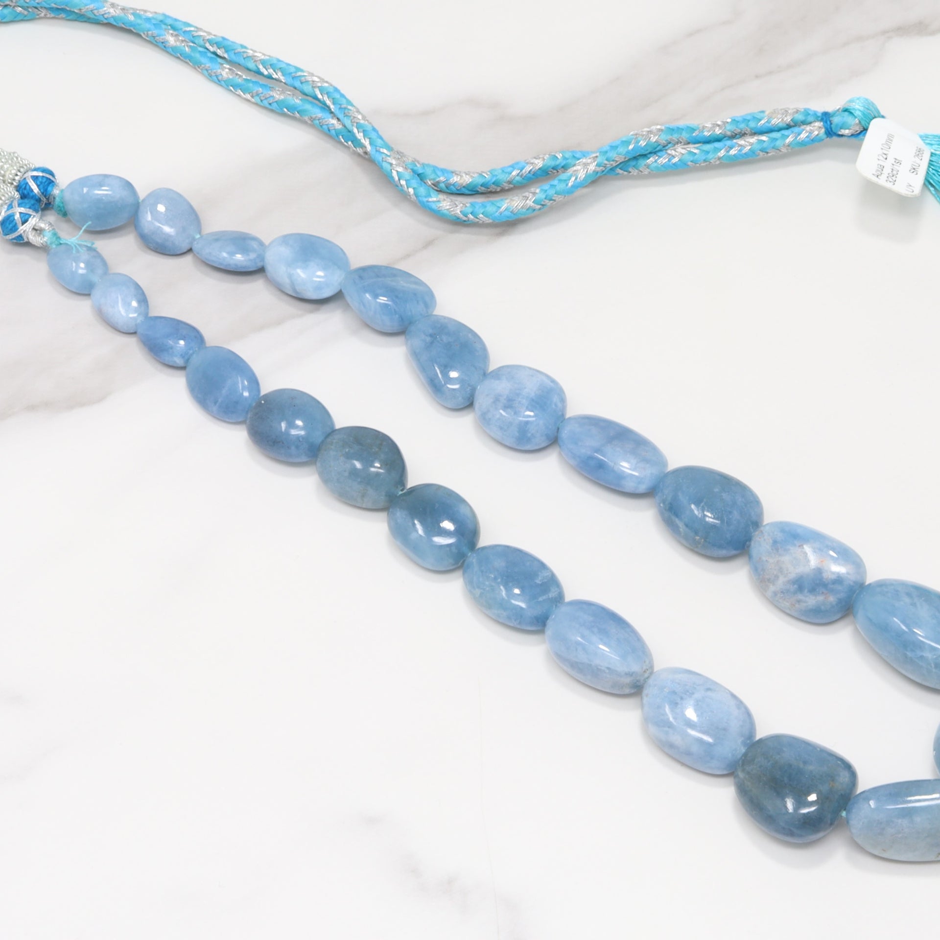 Blue Milky Aquamarine 12x10mm - 20x16mm Smooth Nuggets 1 Strand Bead Necklace