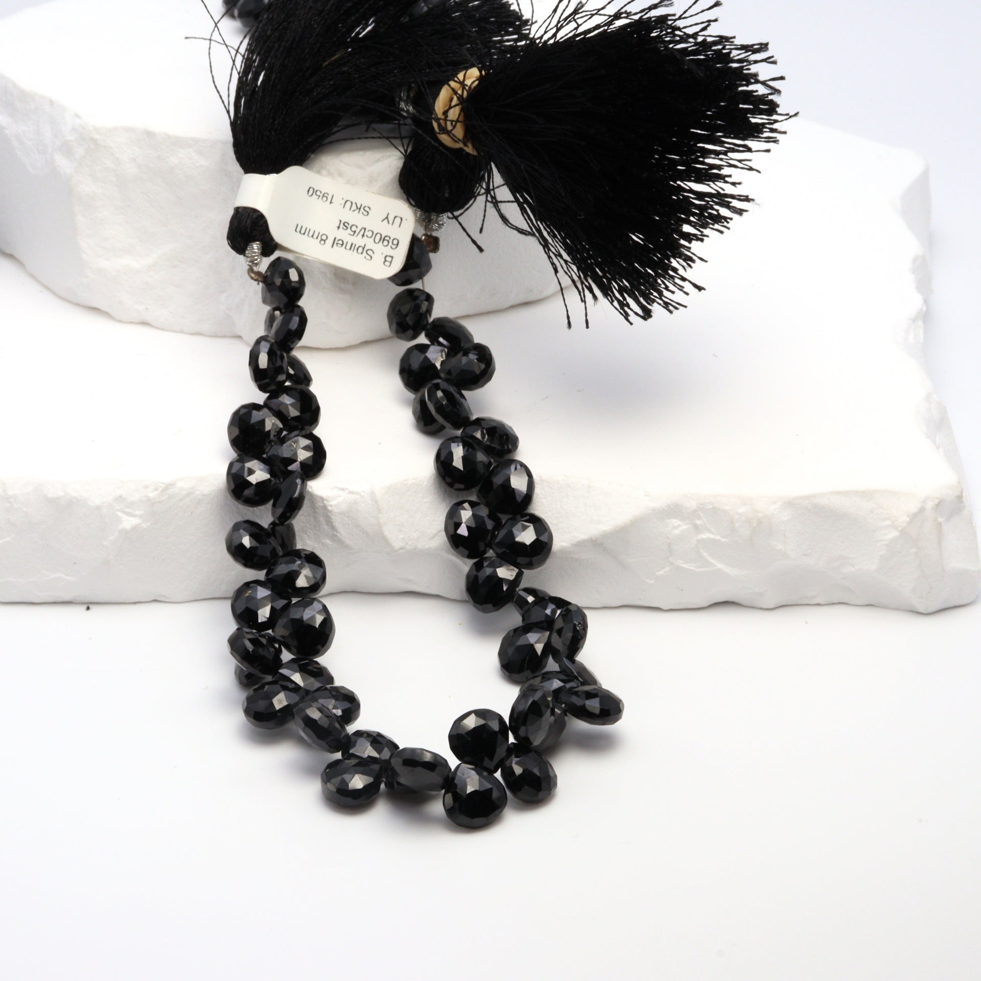 Black Spinel 8mm Faceted Heart Shaped Briolettes Bead Strand