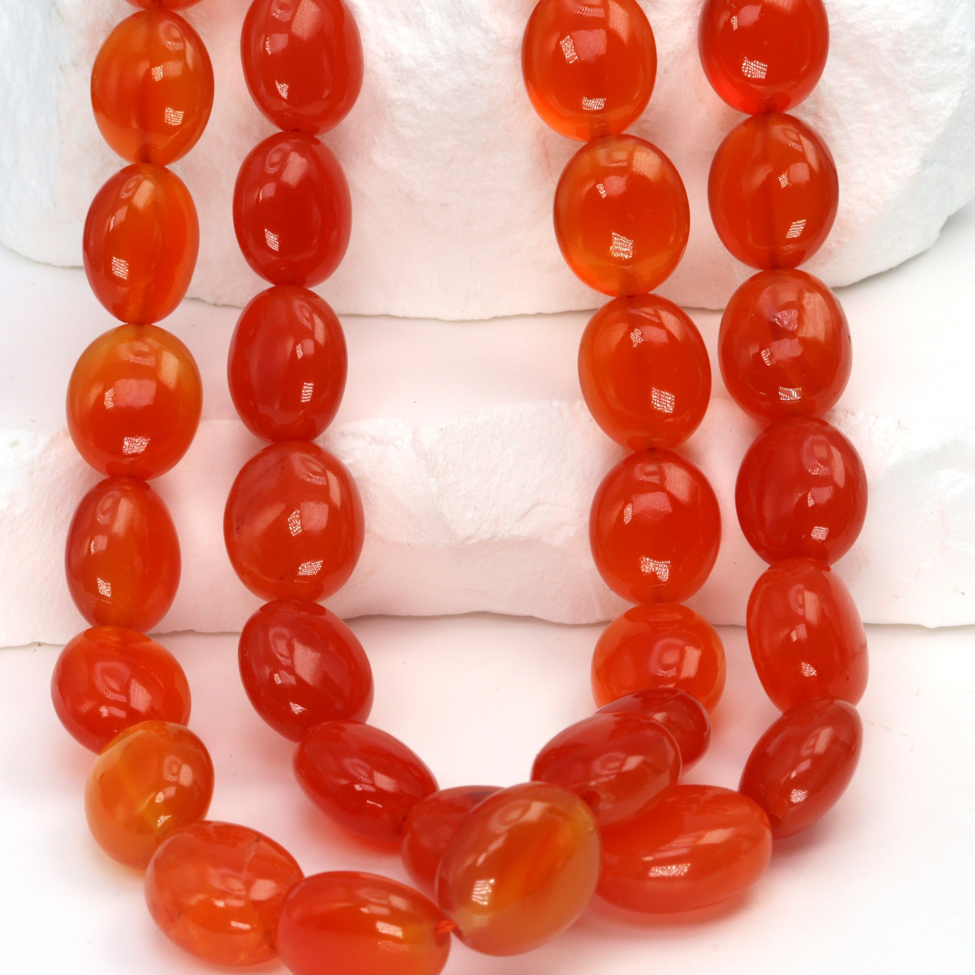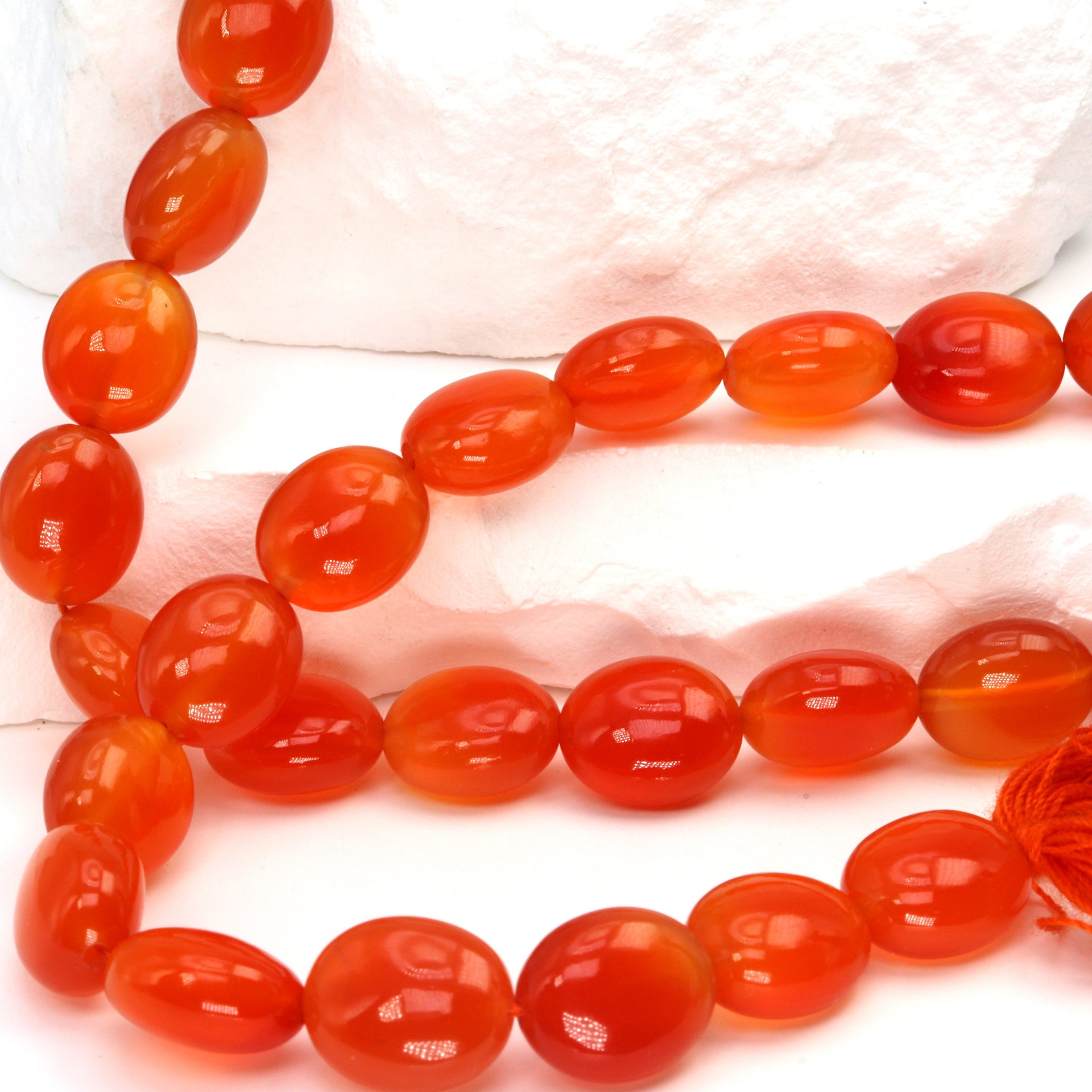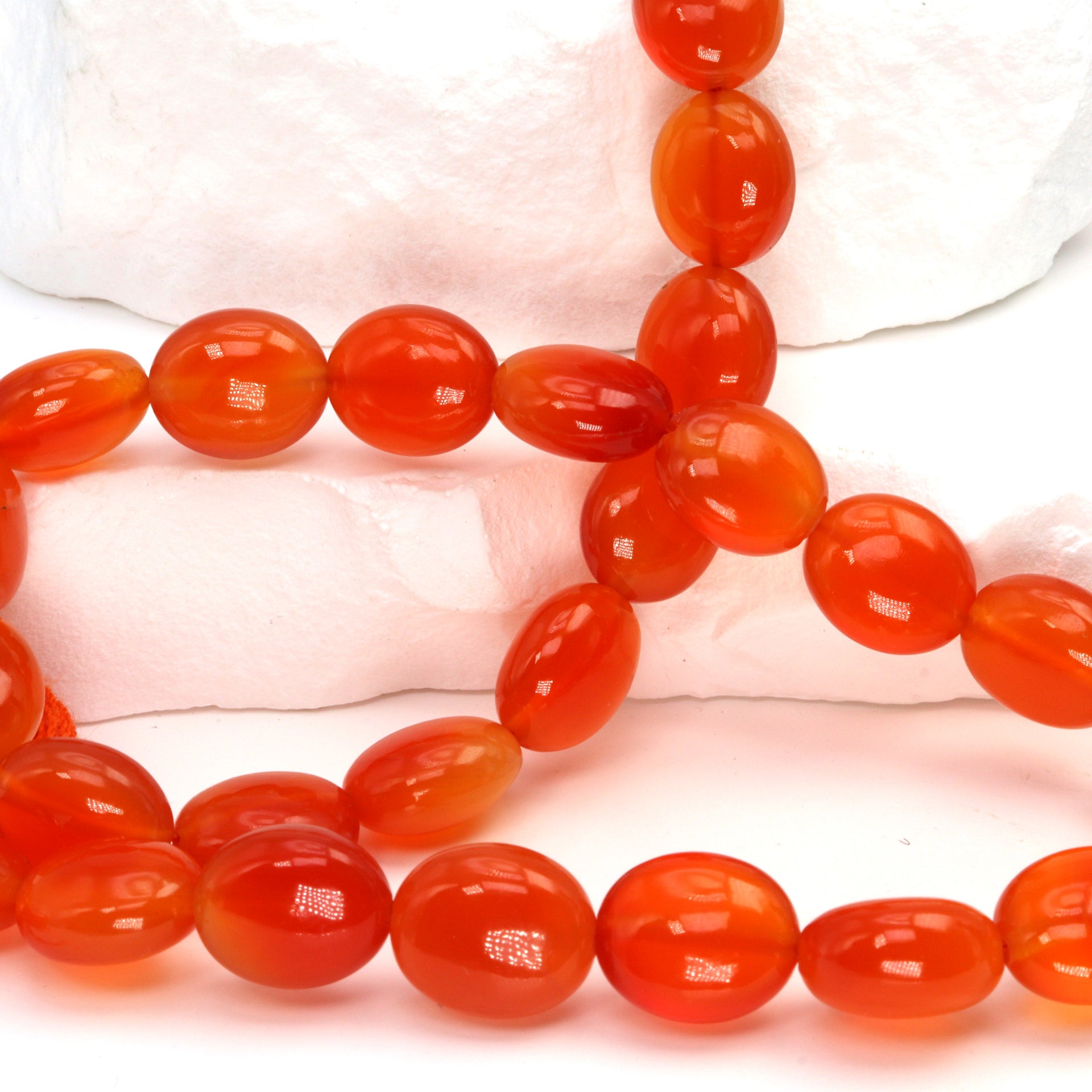 Orange Carnelian 12x10mm Smooth Ovals Bead Strand
