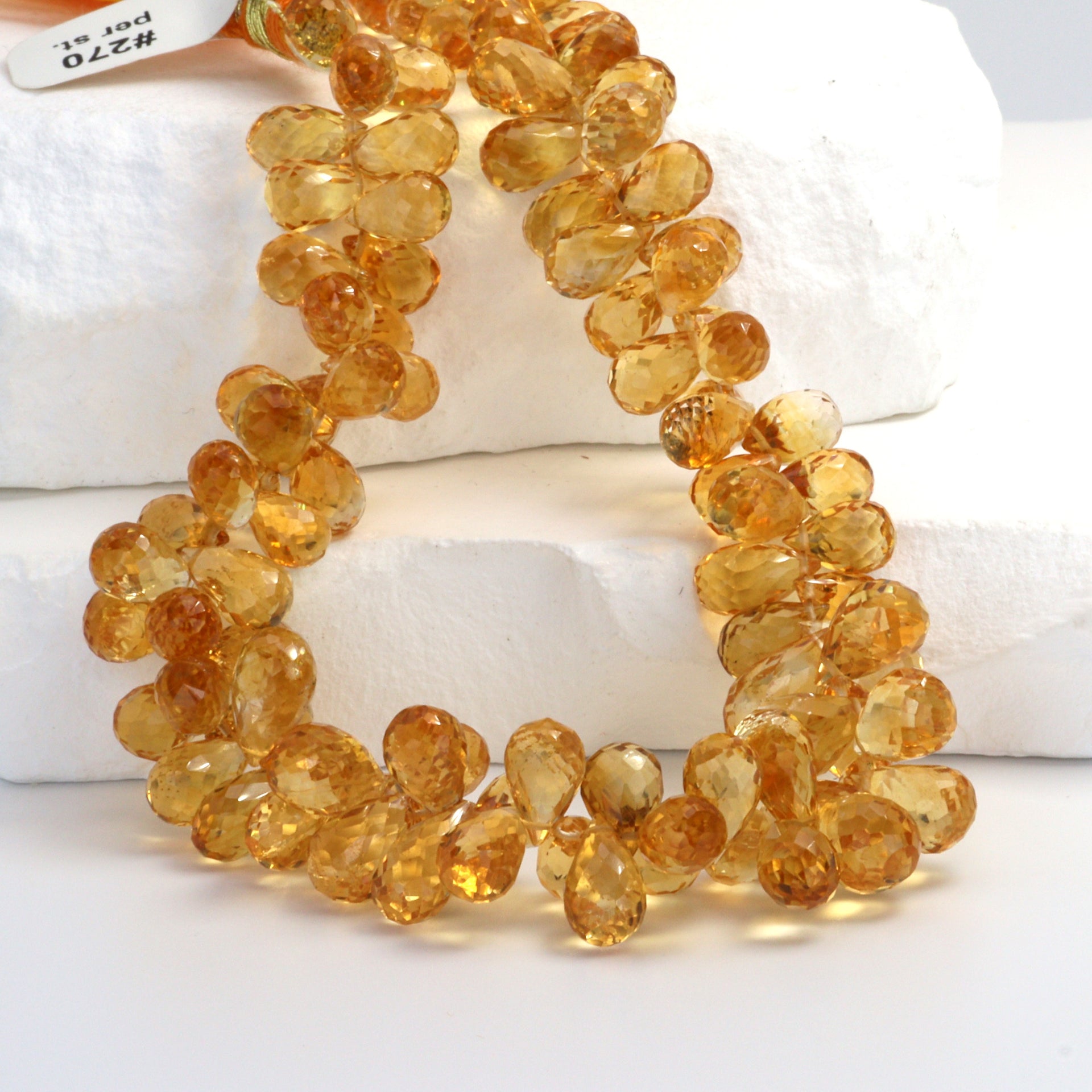 AA Yellow Citrine 9x5mm Faceted Teardrop Briolettes Bead Strand