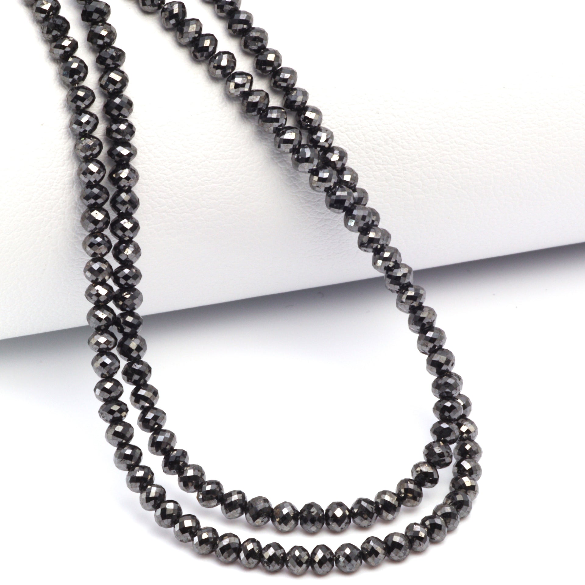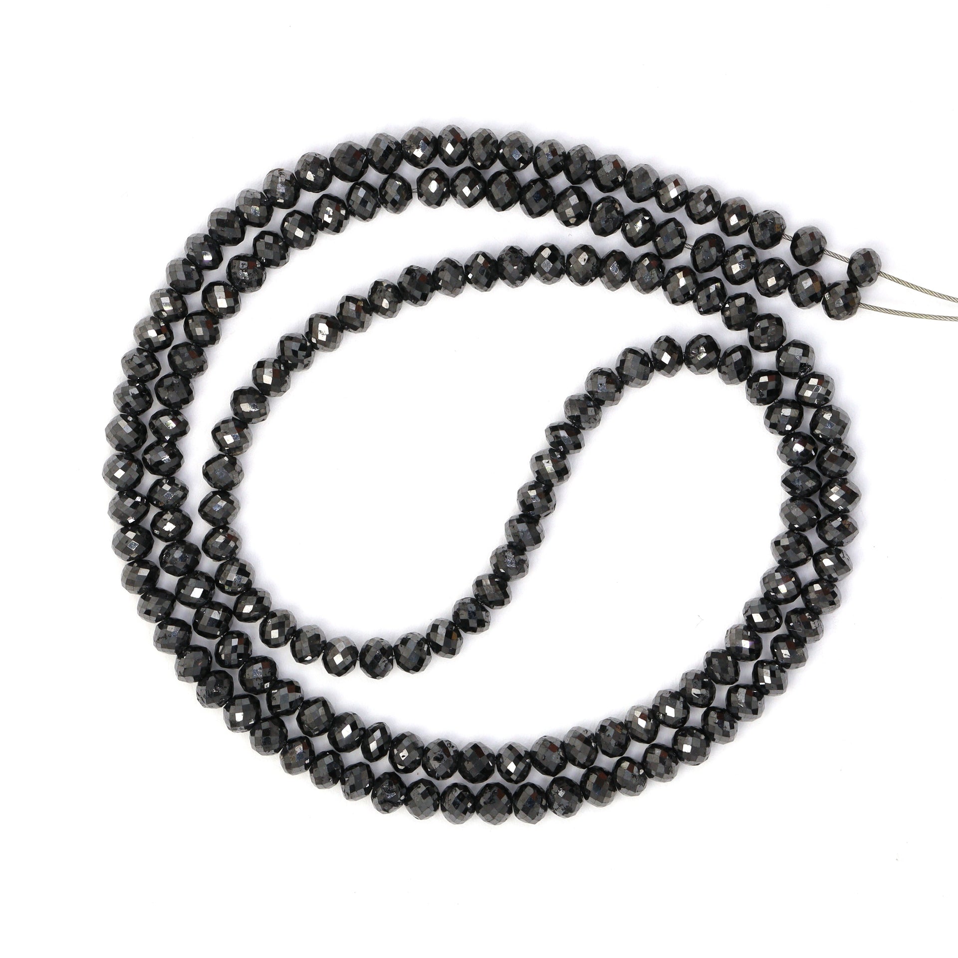 Black Diamond 3mm Hand Faceted Rondelles Bead Strand