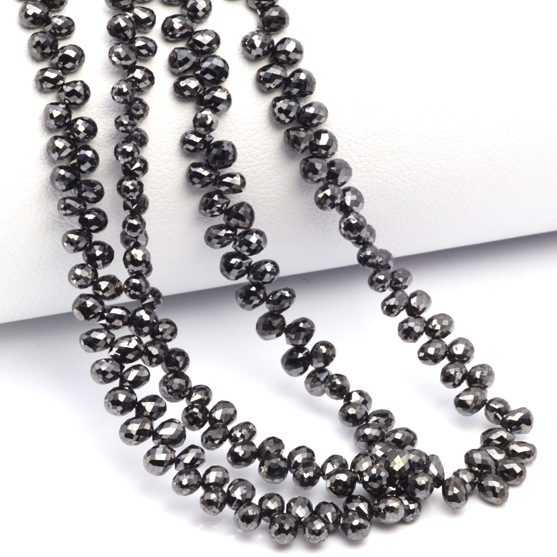 Black Diamond 4x2mm – 5x3mm Faceted Teardrop Briolettes Bead Strand