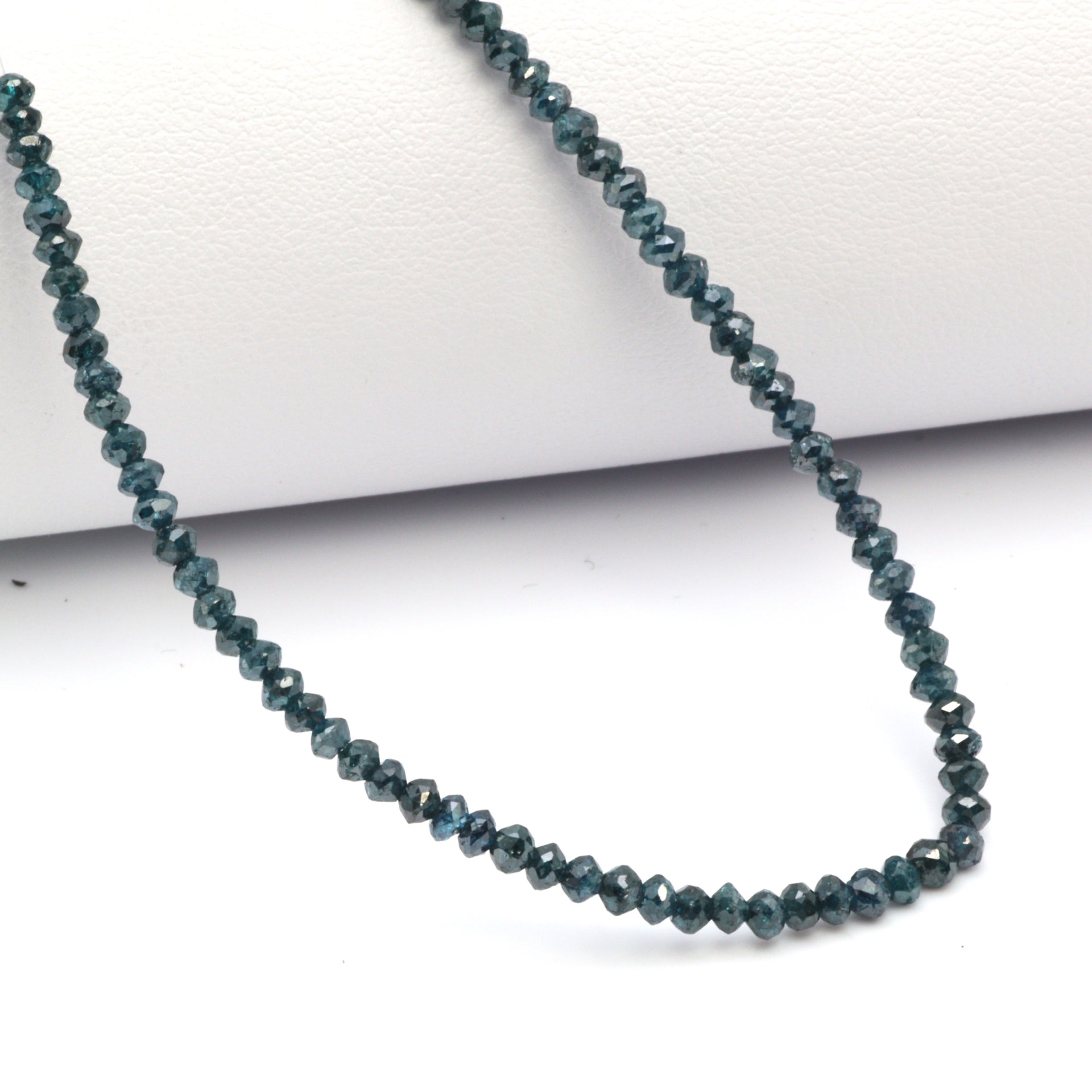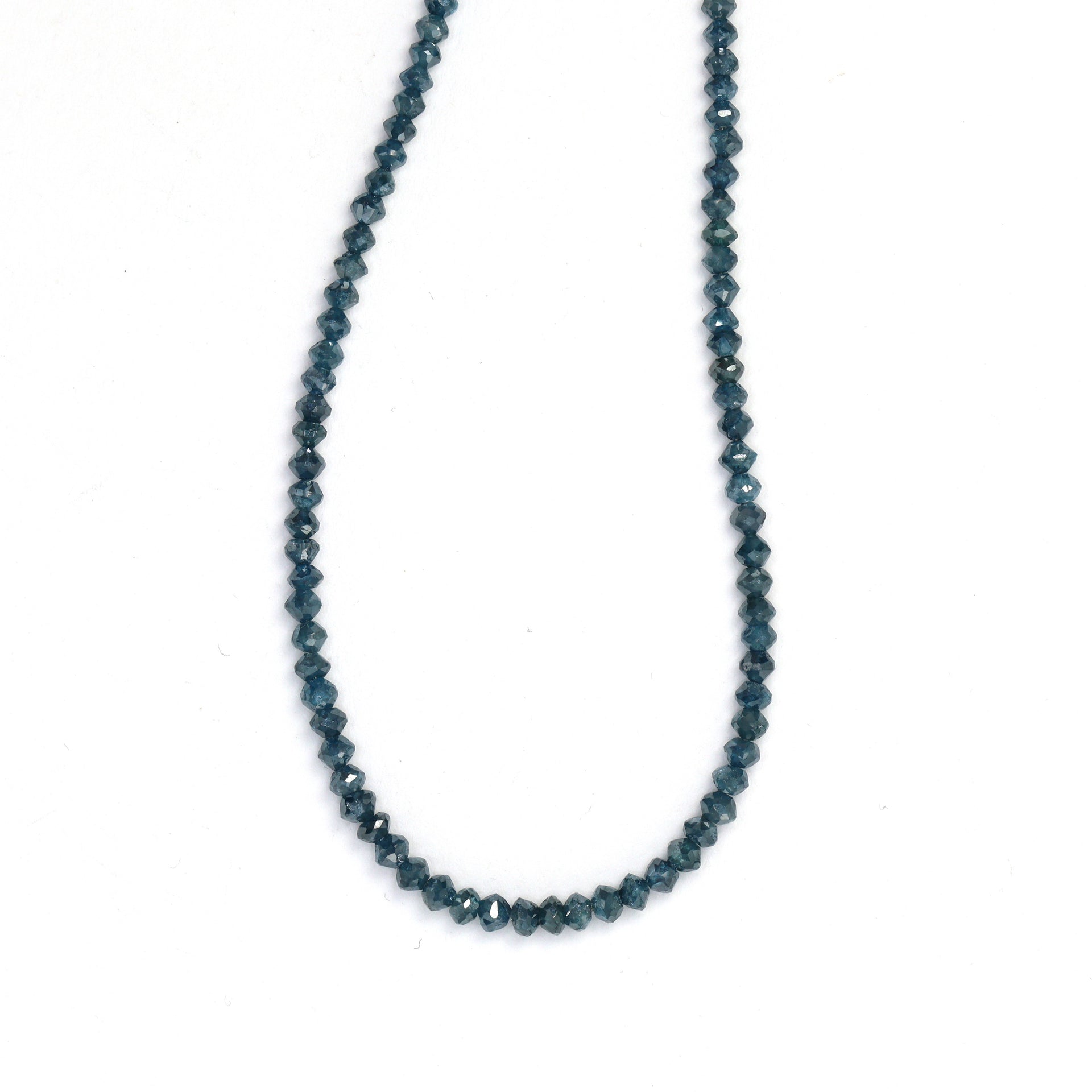 Discover the exquisite beauty of our 15" Full Bead Strand of Blue Diamond Faceted Rondelles. Each bead measures 2.1mm, perfectly cut to enhance its natural brilliance and color. These stunning blue diamond beads are a gemstone wholesaler's dream, offering a unique blend of luxury and versatility. Ideal for jewelry designers and stores, these beads can transform any piece into a statement of elegance. Their vibrant blue hue and faceted finish catch the light beautifully, adding a touch of sparkle to any design. Whether you're creating a necklace, bracelet, or earrings, these blue diamond rondelle beads are sure to elevate your jewelry collection.
