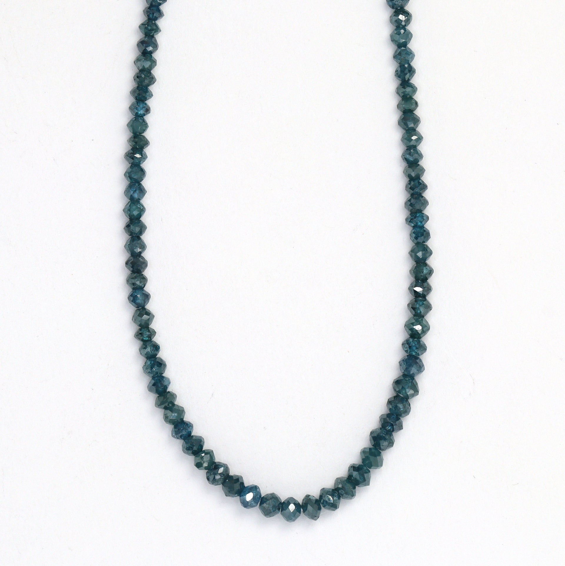 Illuminate your jewelry collection with the unparalleled sparkle of our Blue Diamond 2.1mm - 2.8mm Hand Faceted Rondelle Beads. Each bead in this exquisite strand has been hand-faceted with meticulous care, showcasing the unique brilliance and rare beauty of blue diamonds. These beads range in size from 2.1mm to 2.8mm, offering a subtle yet captivating variation that adds depth and texture to any design. The mesmerizing hue of blue diamonds, reminiscent of the deepest parts of the ocean, brings a touch of luxury and exclusivity to your creations. Ideal for crafting exquisite, high-end jewelry pieces, these beads are perfect for designers and jewelers aiming to offer their clients something truly extraordinary. Blue diamonds are not only sought after for their breathtaking beauty but also for their symbolism of tranquility and strength, making them a meaningful addition to any piece. With our Blue Diamond Hand Faceted Rondelle Beads, you have the opportunity to create jewelry that stands out for its sophistication, quality, and enchanting allure, ensuring your designs capture the hearts of those who seek the ultimate in luxury and elegance.