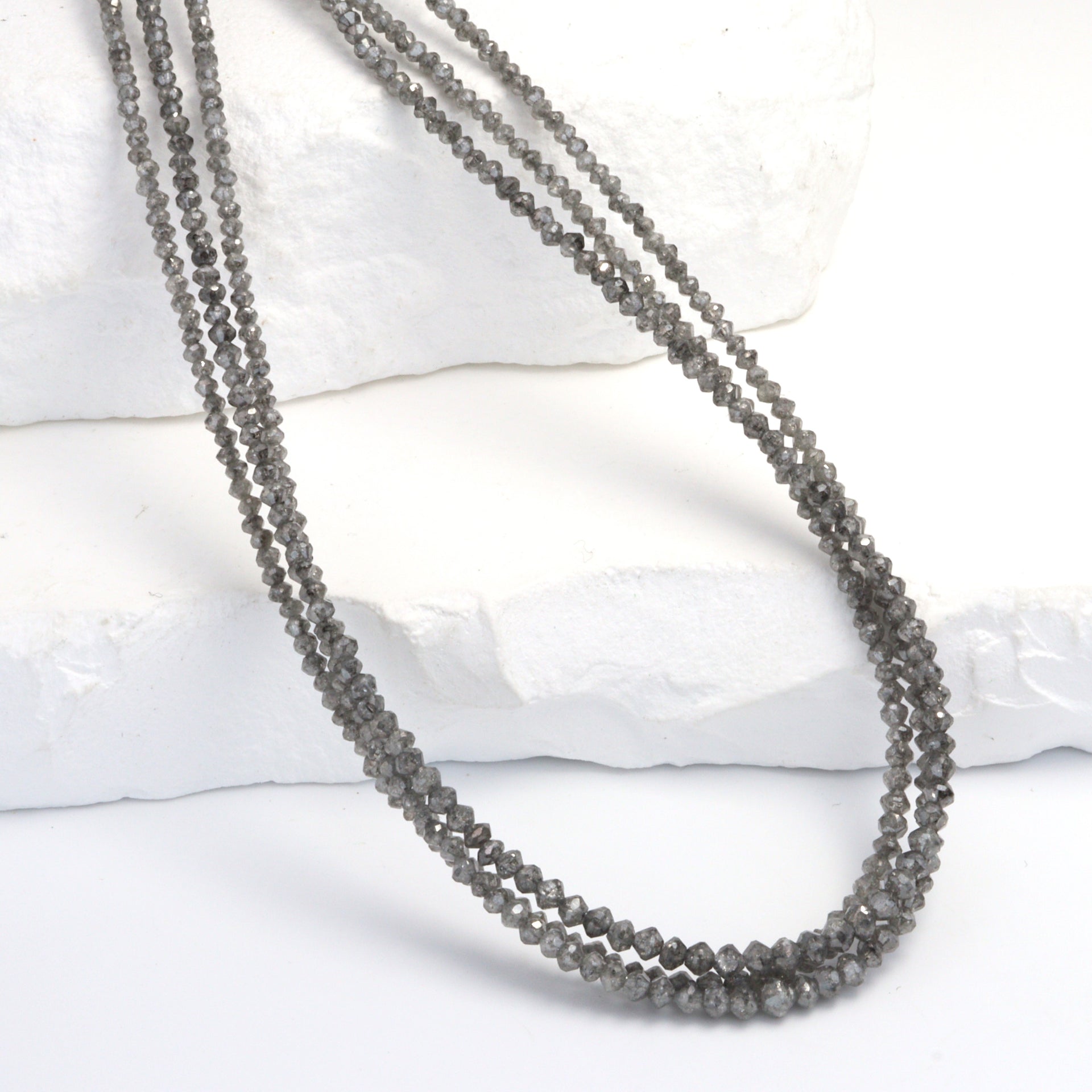 Discover the exquisite beauty of our 15" Full Bead Strand of Gray Diamond Faceted Rondelles. These 1.7mm beads are meticulously crafted to showcase the unique allure of gray diamonds, offering a sophisticated touch to any jewelry design. As a gemstone wholesaler, we provide high-quality, ethically sourced gemstones that are perfect for jewelry designers and stores. Each bead is faceted to enhance its natural sparkle, making it a stunning choice for creating elegant necklaces, bracelets, or earrings. Add a touch of luxury to your jewelry collection with our gray diamond faceted rondelles.