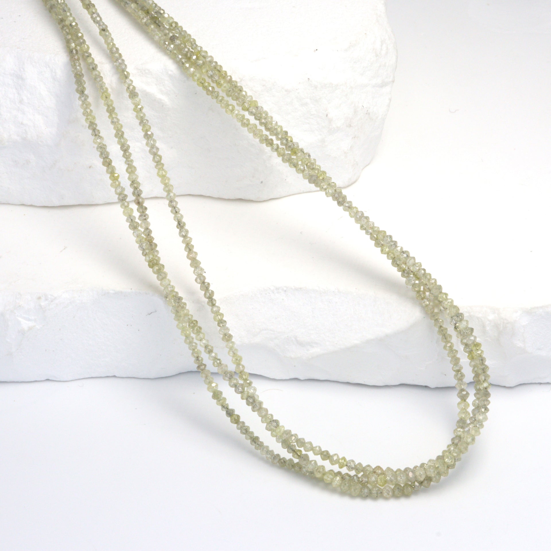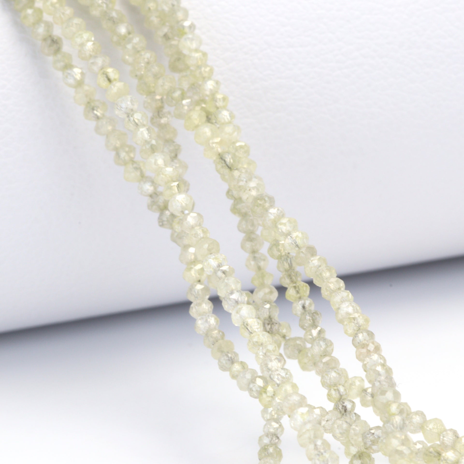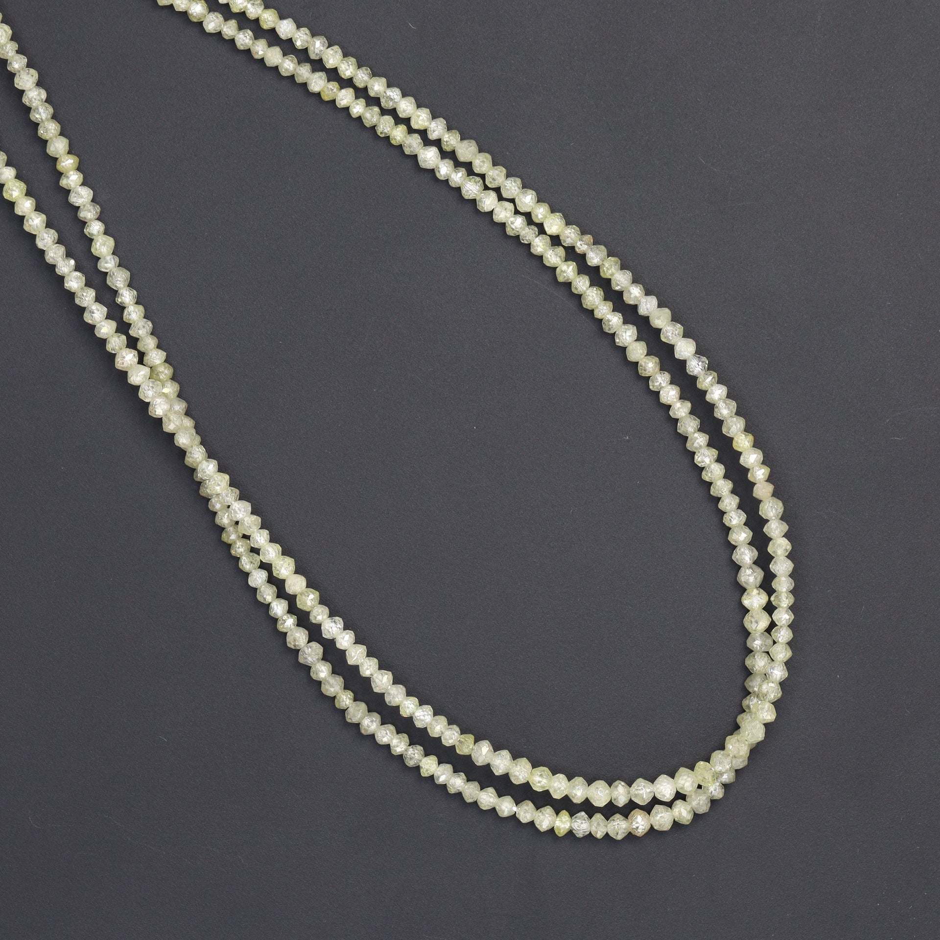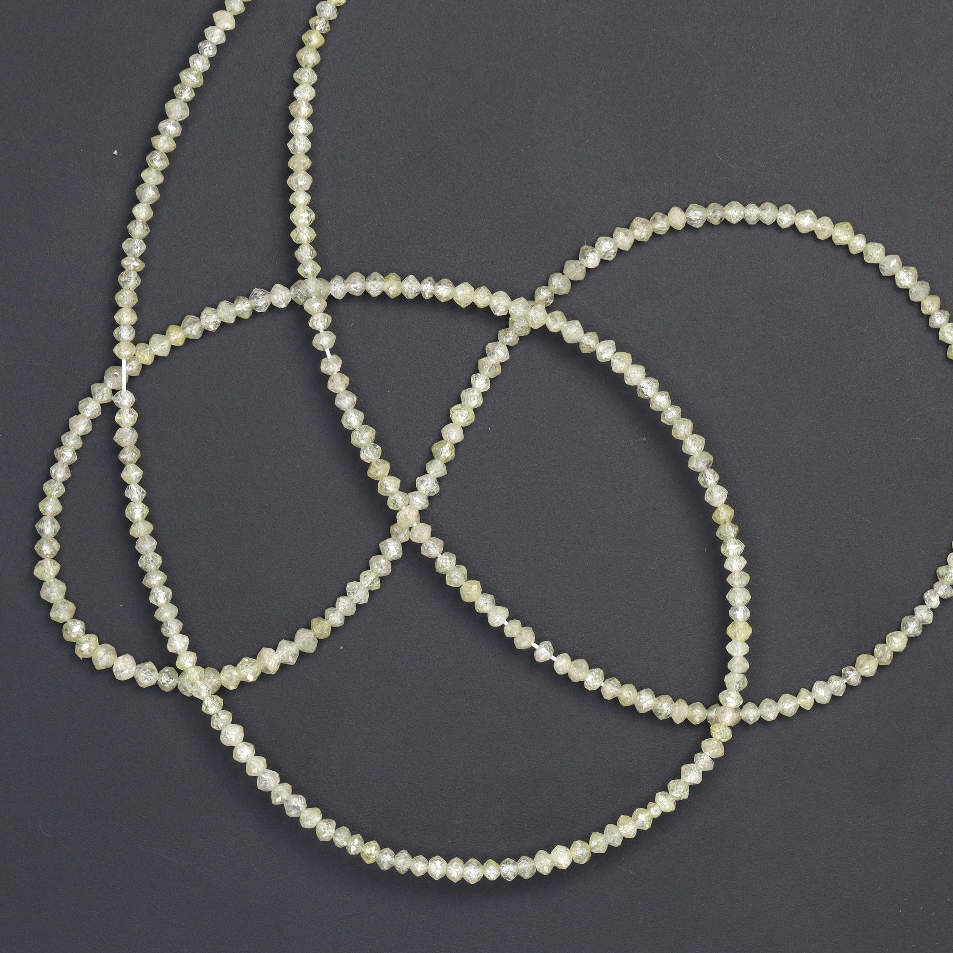 Elevate your jewelry collection with the subtle elegance of our Taupe Diamond 1.9mm - 2.2mm Hand Faceted Rondelle Beads. Each strand offers a selection of exquisitely hand-faceted diamonds, capturing the essence of luxury and sophistication. The unique taupe hue, a blend of warm brown and subtle gray, brings a contemporary edge to classic diamond brilliance, making these beads perfect for creating timeless jewelry with a modern twist. The meticulous hand faceting enhances the natural sparkle of the diamonds, ensuring each bead catches the light to reveal a spectrum of earthy tones. Ranging in size from 1.9mm to 2.2mm, these rondelles are ideal for fine, delicate designs or as exquisite accents in more substantial pieces. Taupe diamonds are not only celebrated for their beauty but are also a symbol of strength and creativity, adding a layer of meaning to your creations. For designers and jewelers aiming to offer their clients something truly special and distinct, our Taupe Diamond Hand Faceted Rondelle Bead Strand is an unparalleled choice, promising to infuse your designs with elegance, quality, and a touch of the extraordinary.