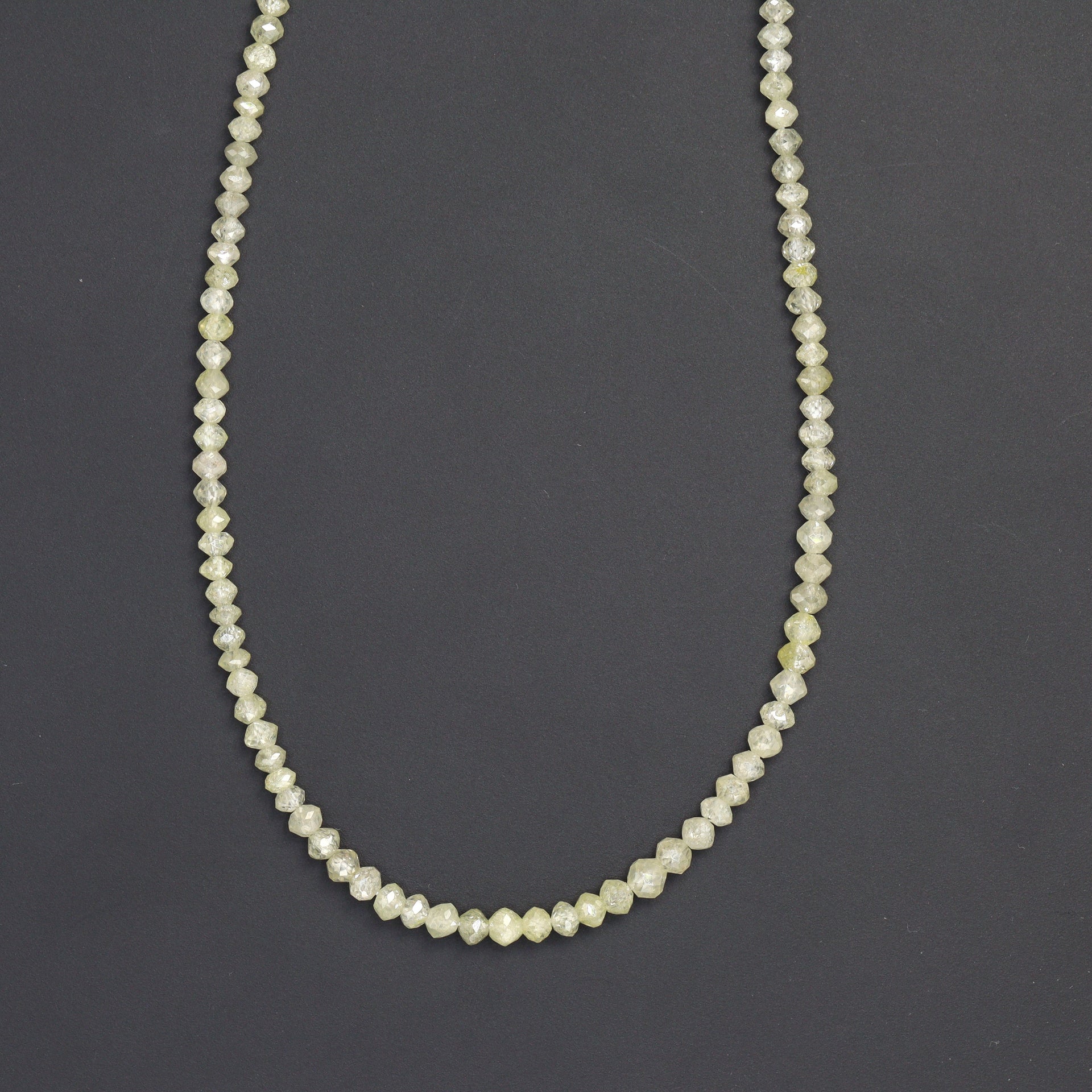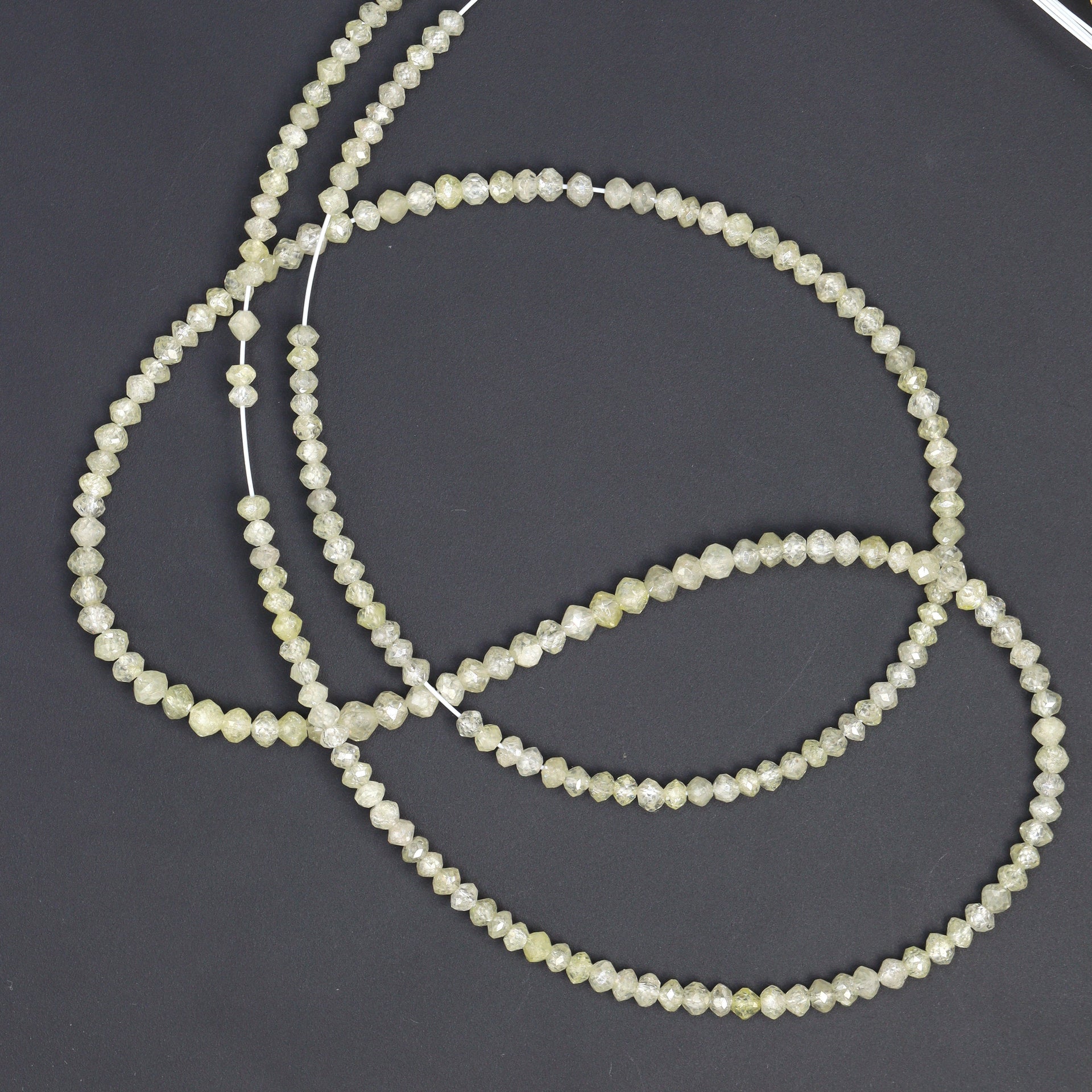 Elevate your jewelry designs with the subtle elegance of our Taupe Diamond 2.1mm - 2.5mm Hand Faceted Rondelle Bead Strand, a luxurious choice for discerning jewelers and designers. Each strand features an exquisite selection of hand-faceted taupe diamonds, their unique color offering a sophisticated and modern twist on traditional diamond jewelry. Ranging in size from 2.1mm to 2.5mm, these rondelle beads shimmer with a muted yet captivating luster, perfect for creating pieces that blend timeless charm with contemporary style. The neutral, earthy tone of the taupe diamonds makes them incredibly versatile, ideal for pairing with a wide range of materials and colors, from classic gold and silver to more vibrant gemstones. These beads not only add a touch of understated luxury to any design but also carry the timeless appeal and intrinsic value of diamonds. Perfect for crafting elegant bracelets, necklaces, and earrings, our Taupe Diamond Faceted Rondelle Beads are for those who seek to offer their clients jewelry that combines artisan craftsmanship with the exclusive allure of diamonds, ensuring each piece stands out with its distinctive beauty and refined elegance.