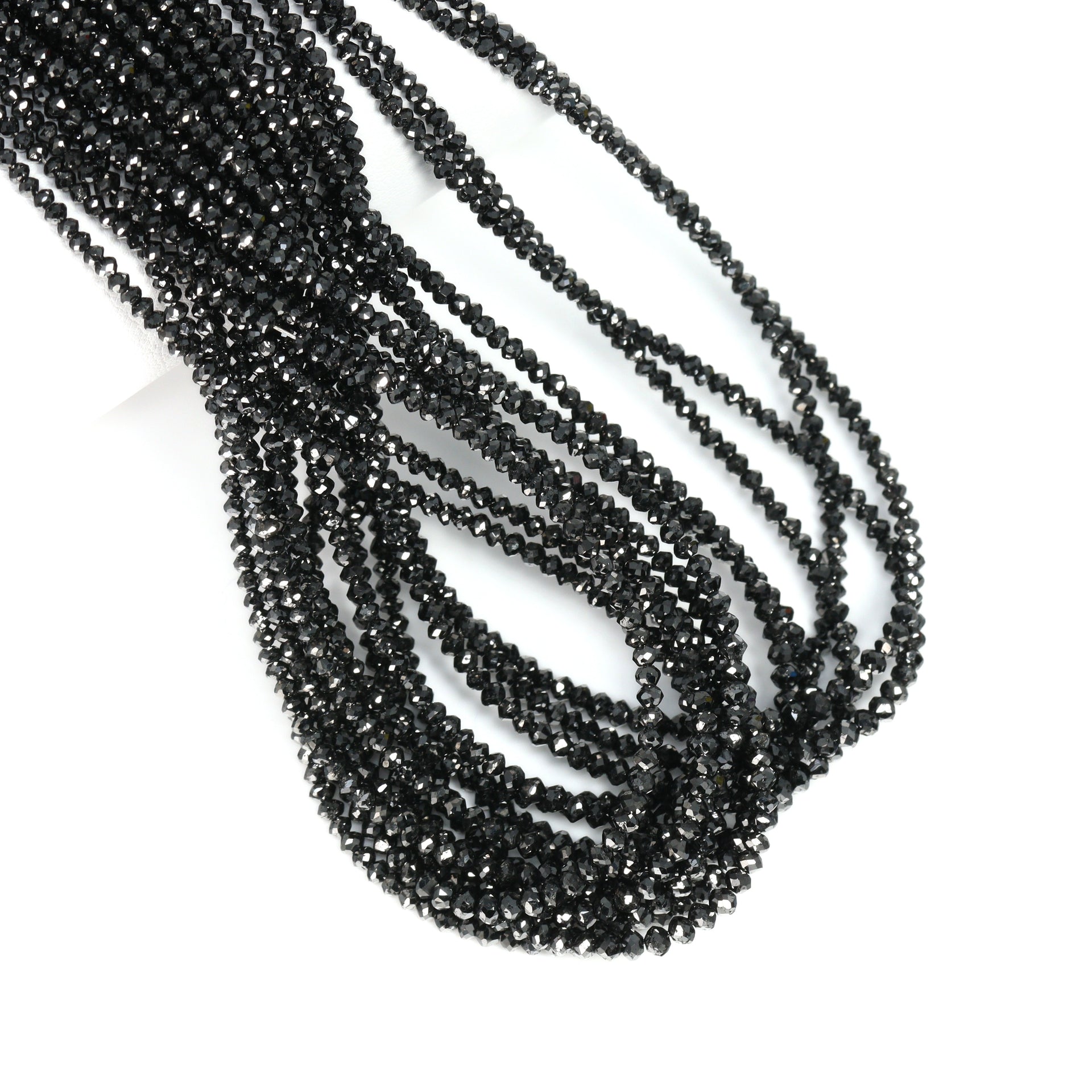 Black Diamond 2mm – 2.7mm Hand Faceted Rondelles Bead Strand