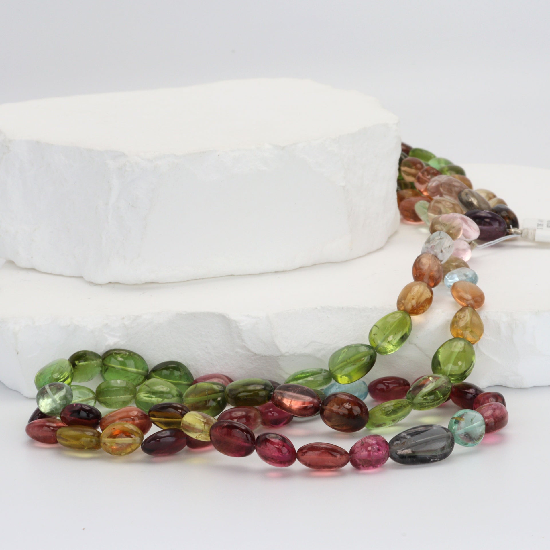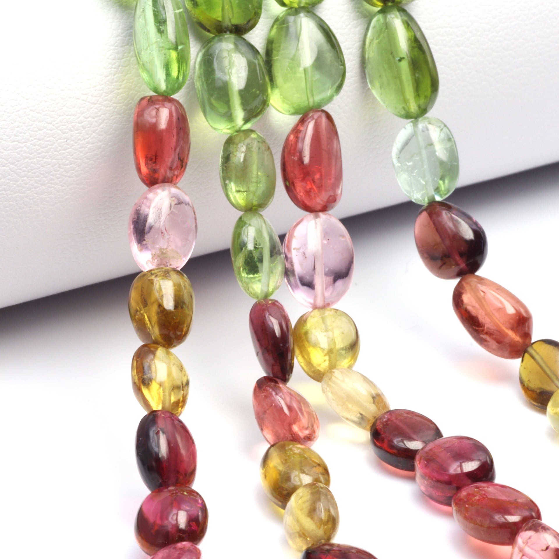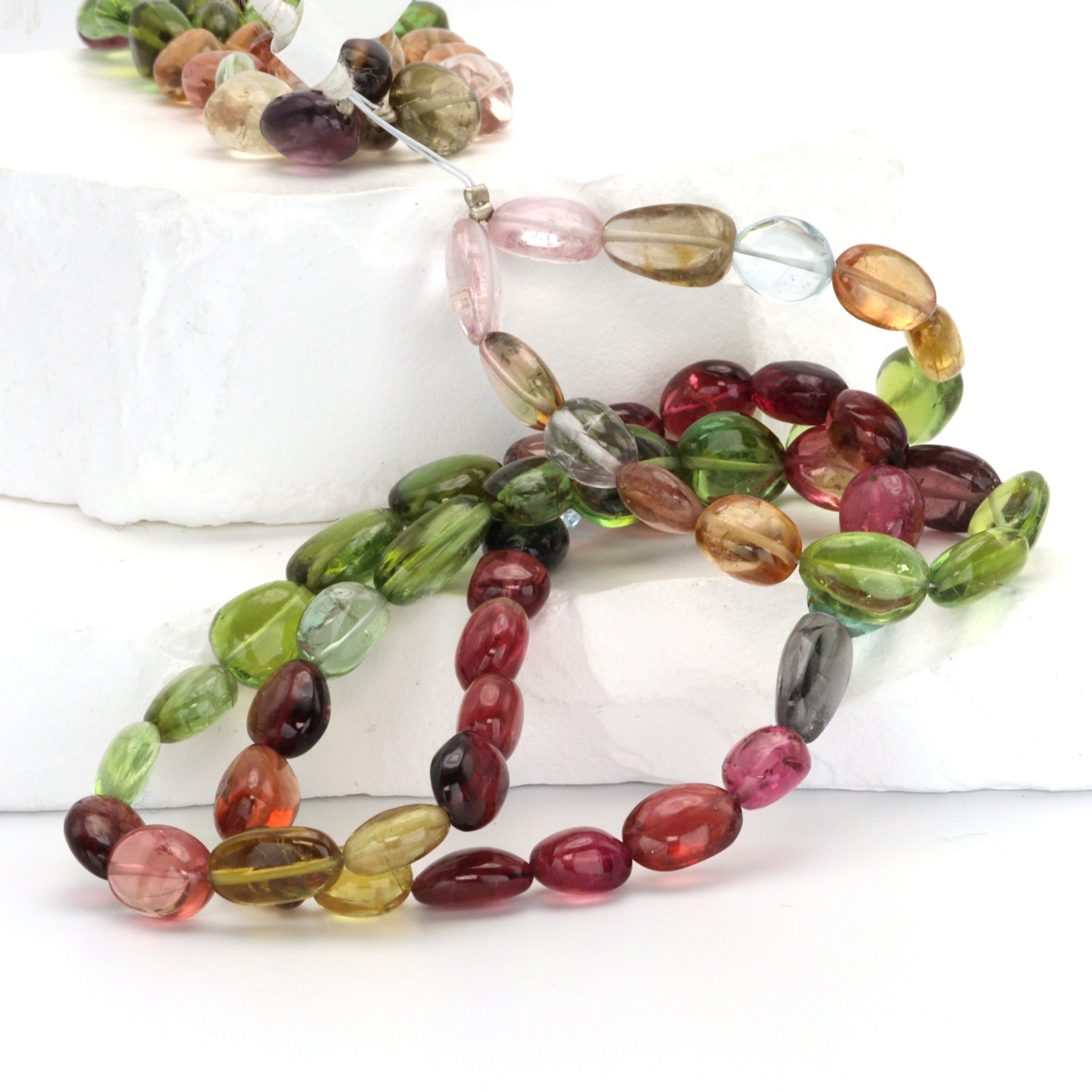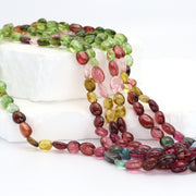 Watermelon Tourmaline 8x5mm - 9x6mm Smooth Ovals Bead Strand