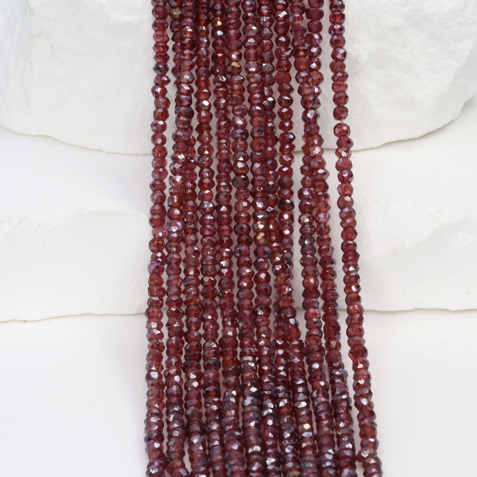Coated Rhodolite Garnet 2.5mm Faceted Rondelles Bead Strand