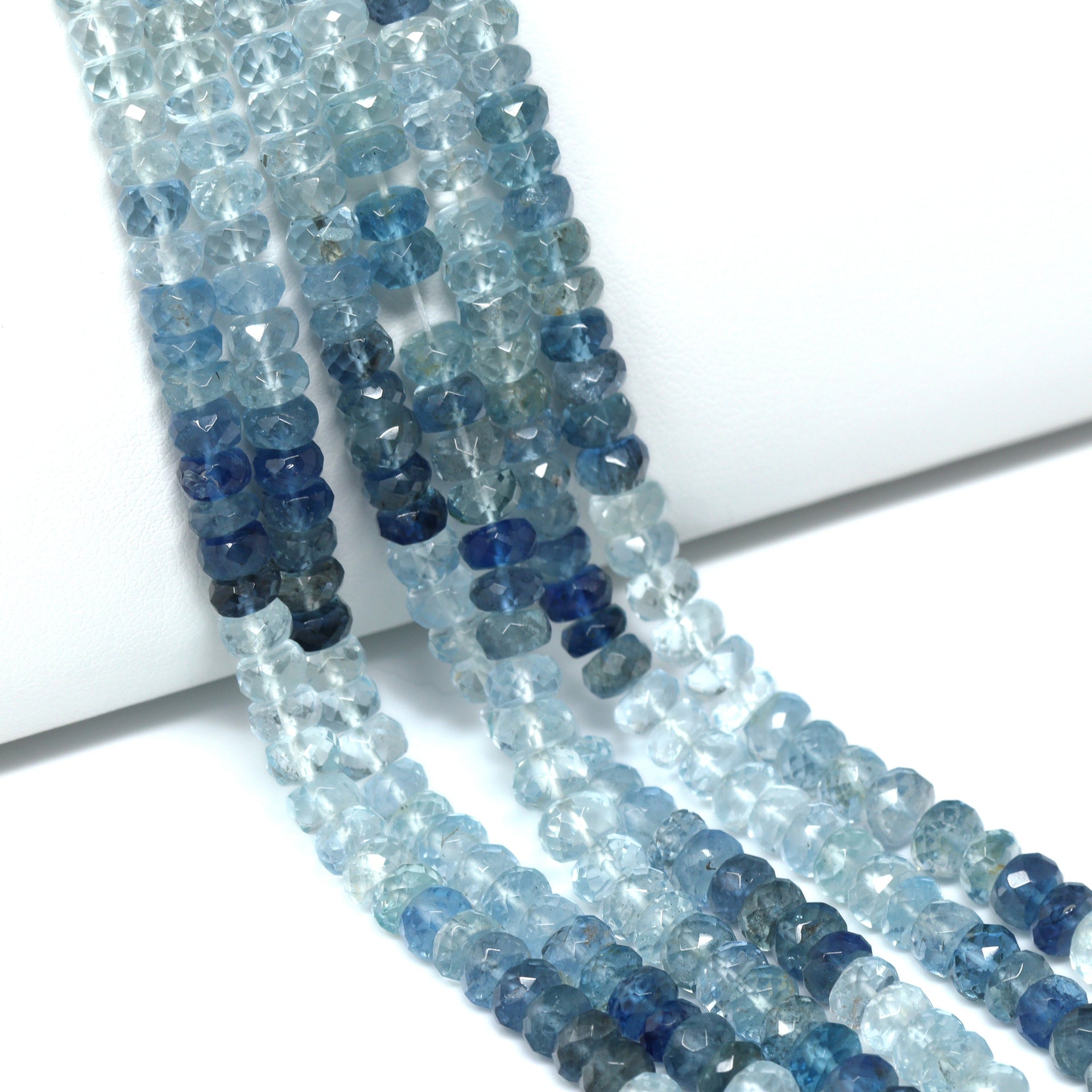 Ombre Blue Aquamarine 4mm – 5mm Hand Faceted Rondelles Bead Strand