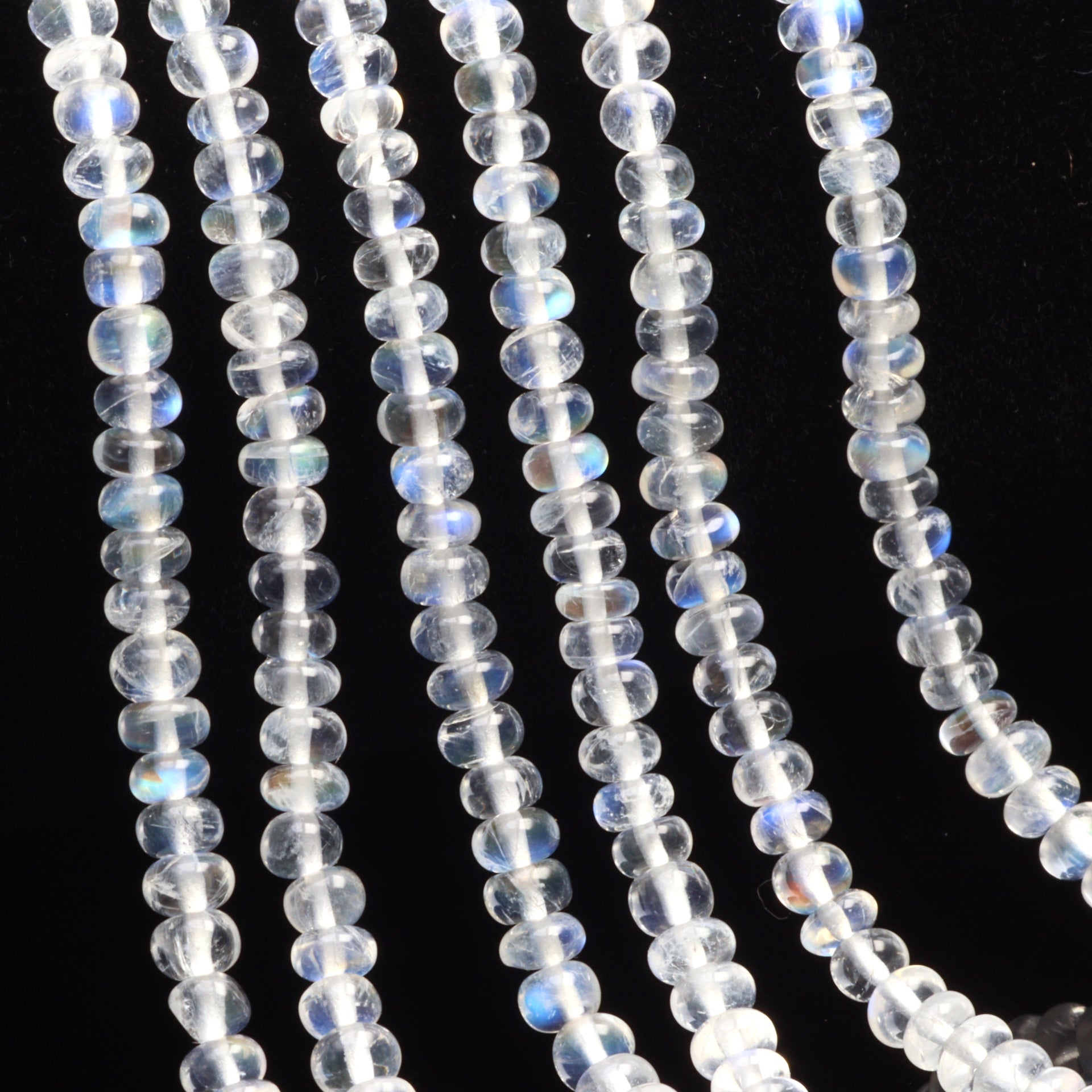 AA Blue Rainbow Moonstone 3.5mm - 4.5mm Smooth Rondelles Bead Strand
