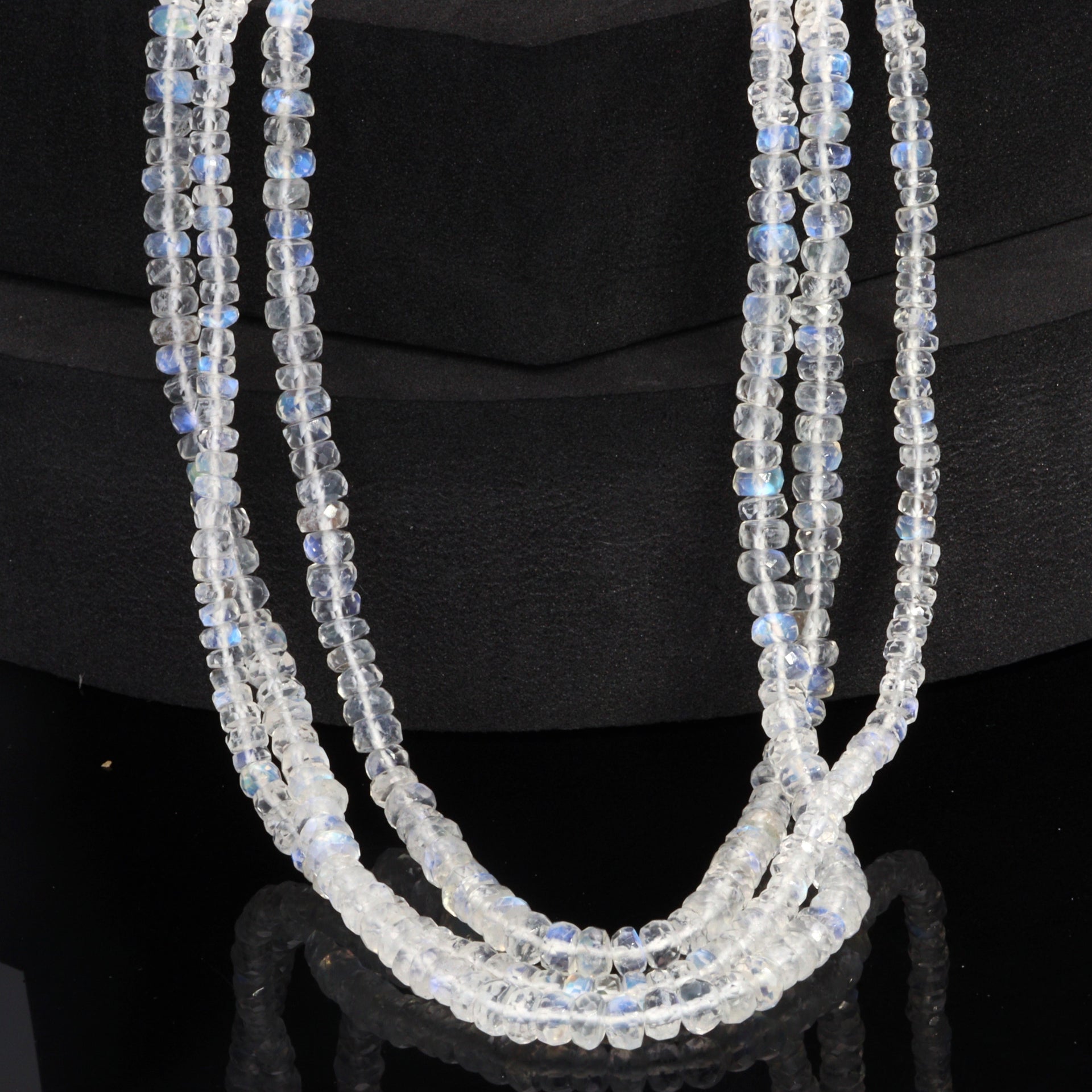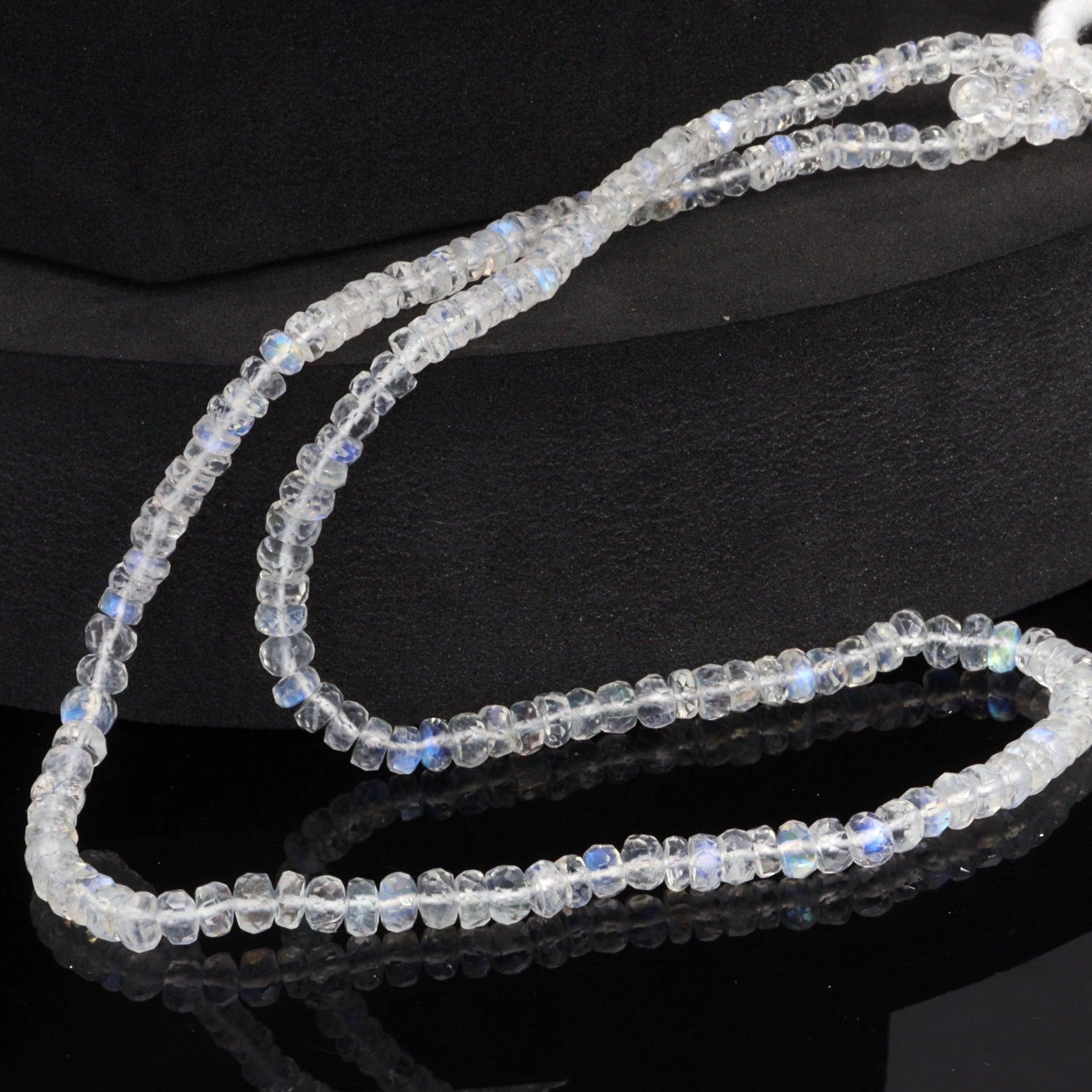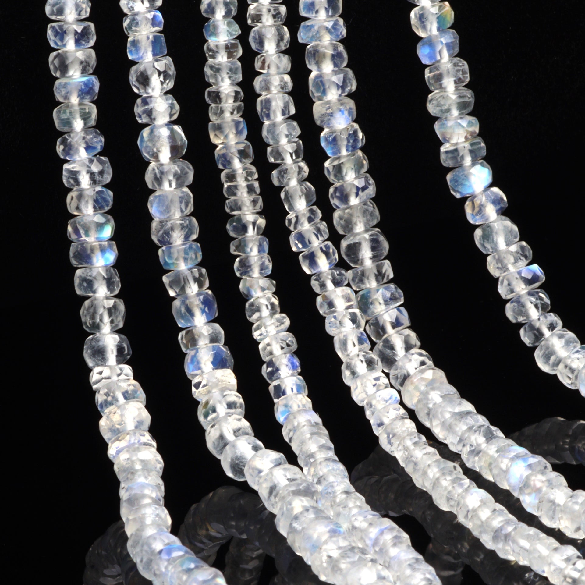 AA Blue Rainbow Moonstone 4mm Hand Faceted Rondelles Bead Strand