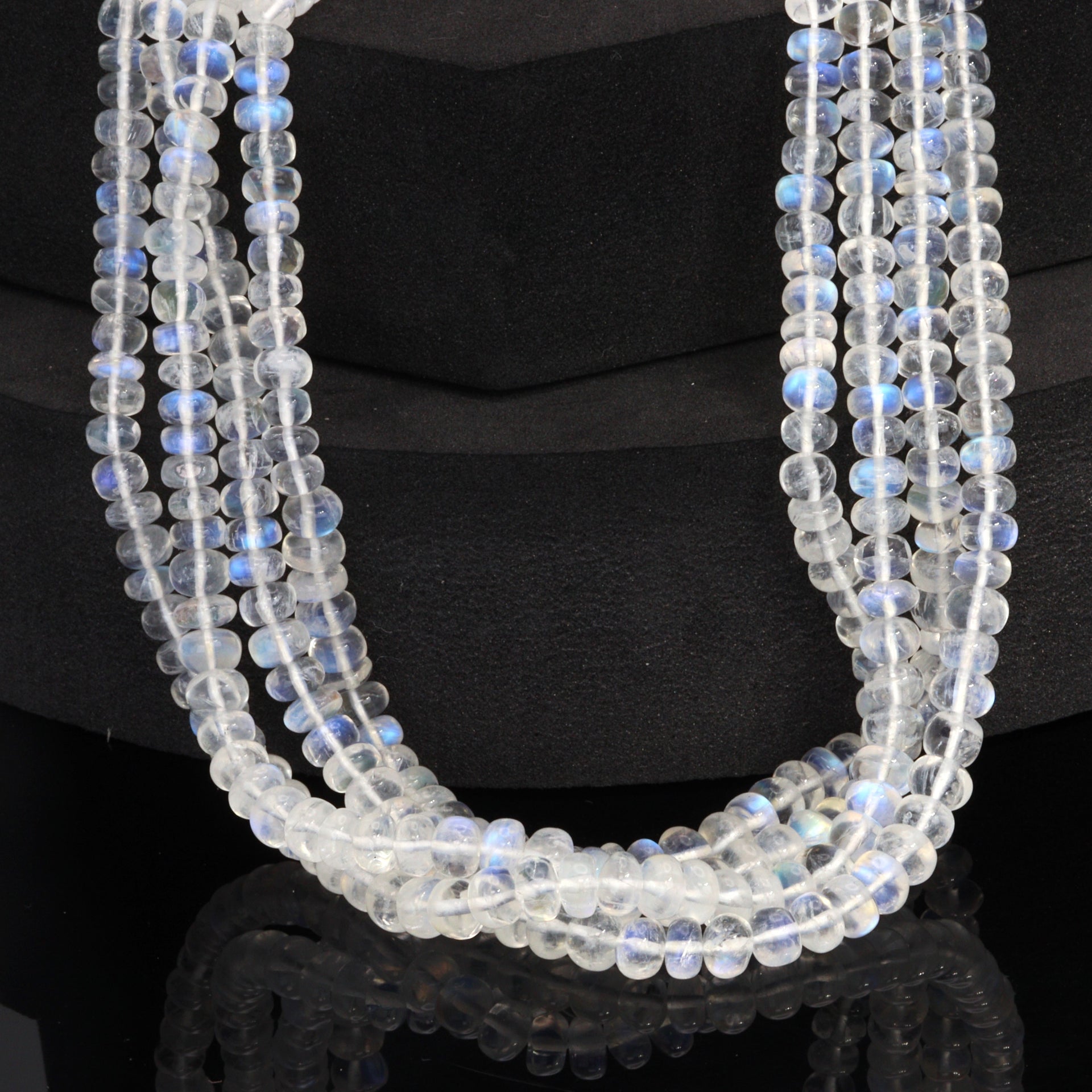 AA Blue Rainbow Moonstone 4mm - 5.5mm Smooth Rondelles Bead Strand