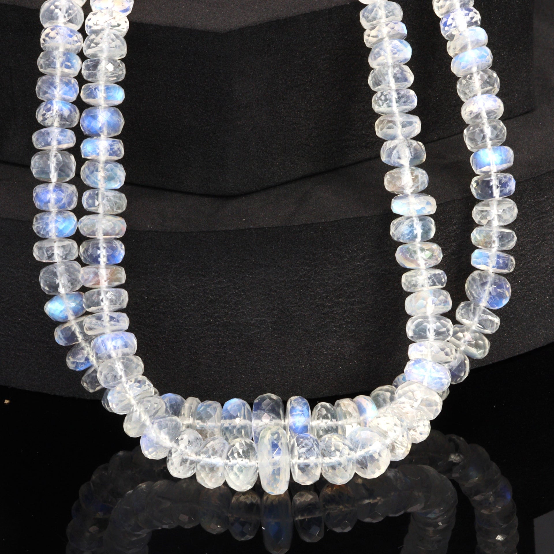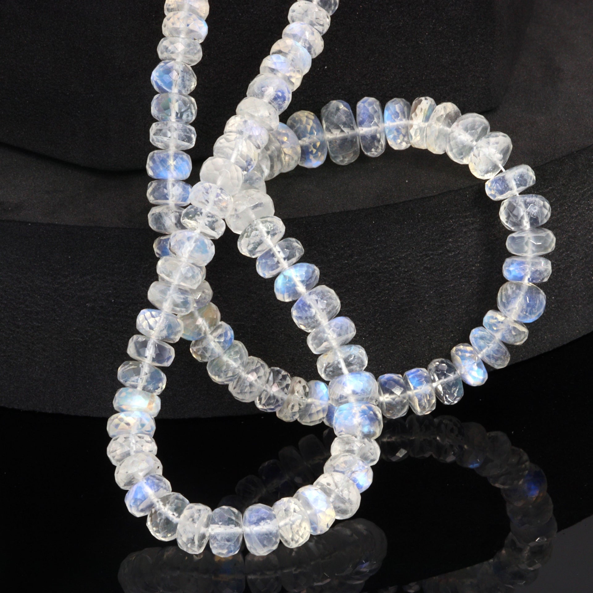 AA Blue Rainbow Moonstone 6.5mm - 9.5mm Faceted Rondelles Bead Strand