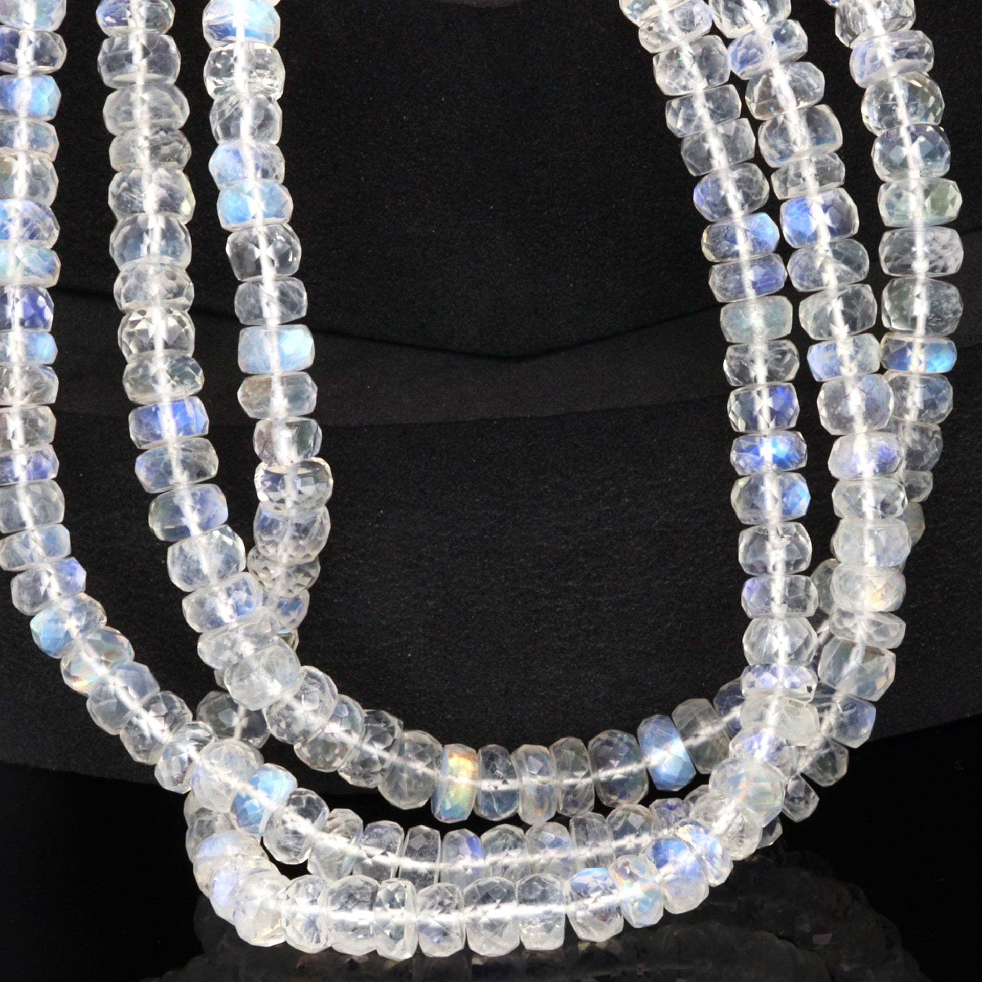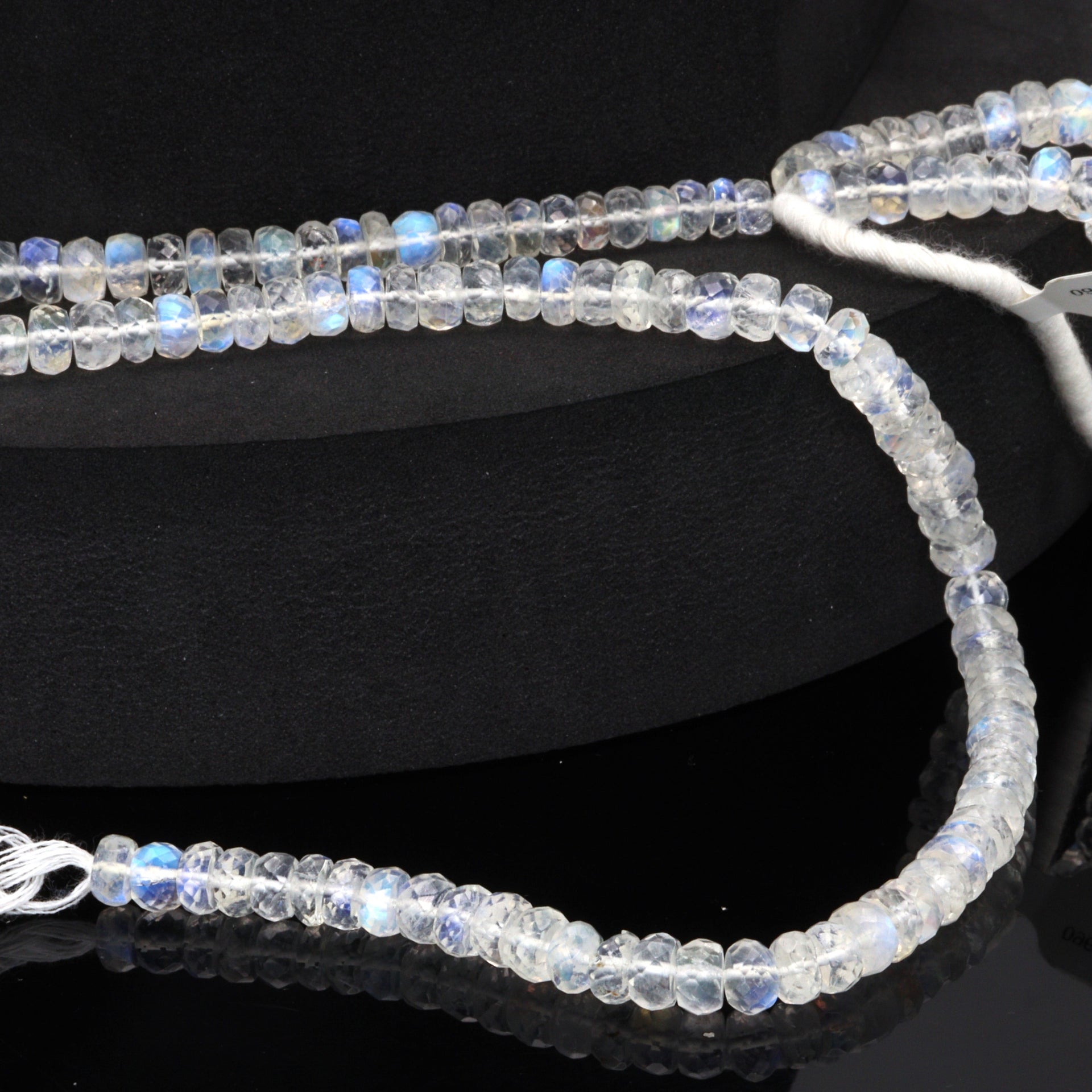 AA Blue Rainbow Moonstone 6mm Faceted Rondelles Bead Strand