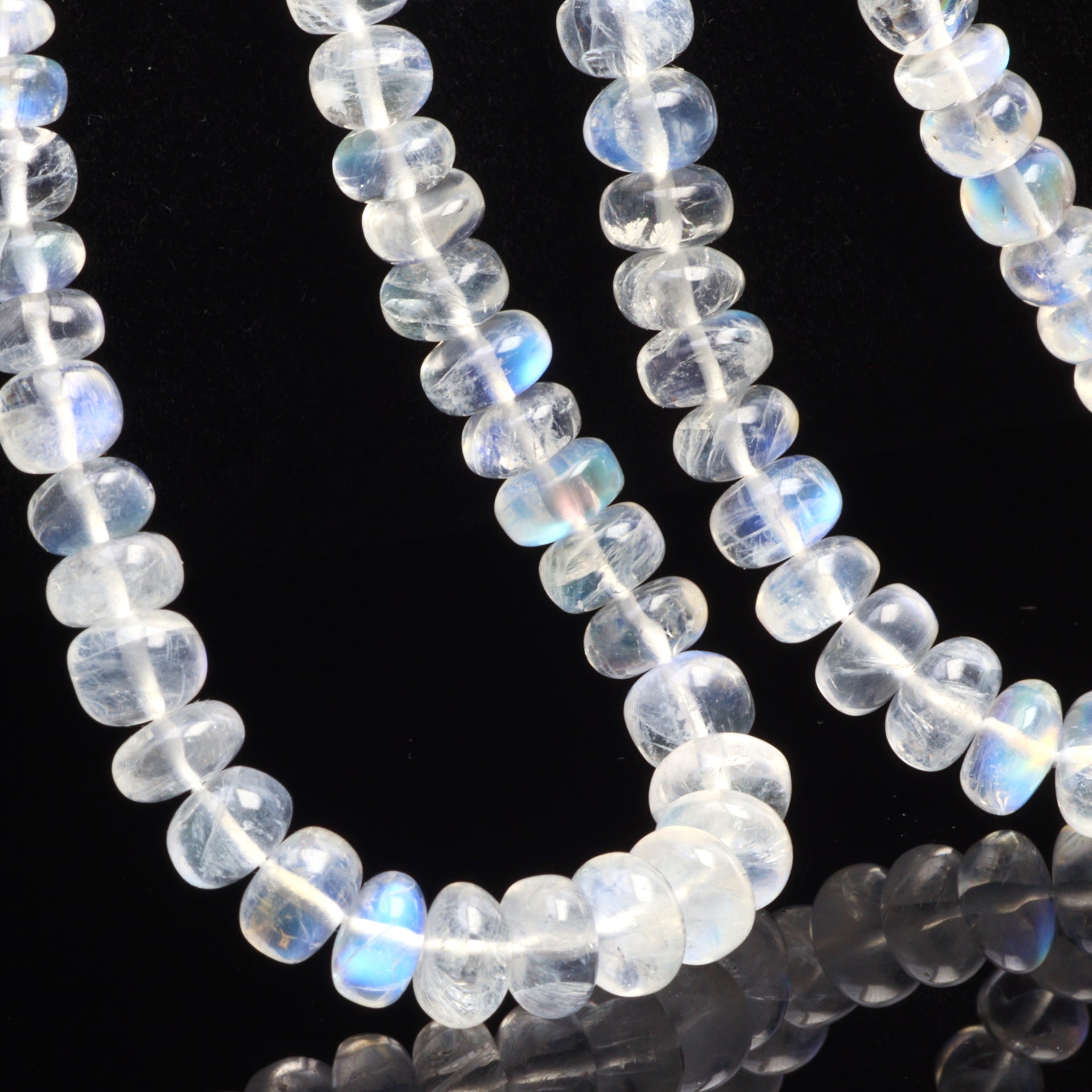 AA Blue Rainbow Moonstone 6mm - 7mm Smooth Rondelles Bead Strand