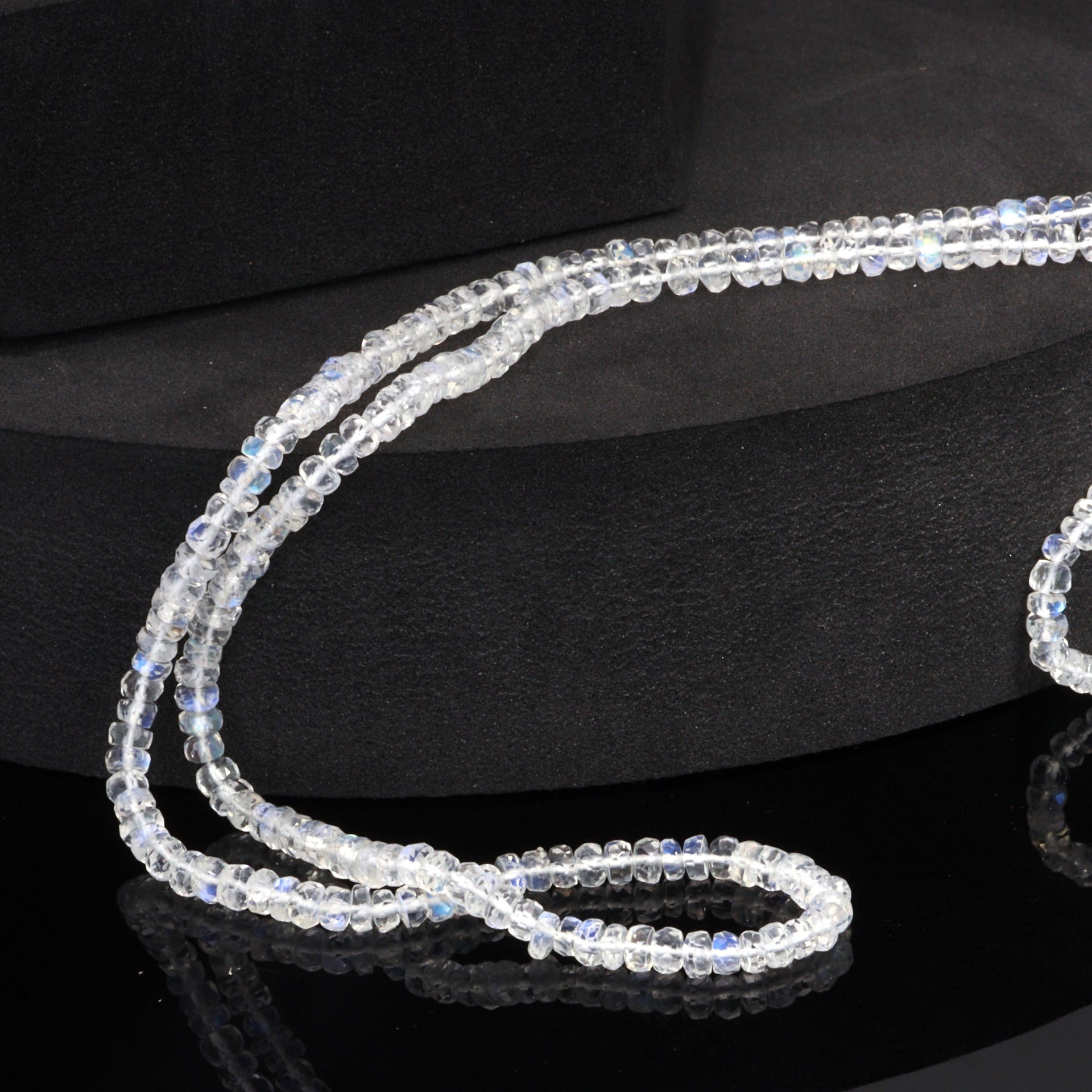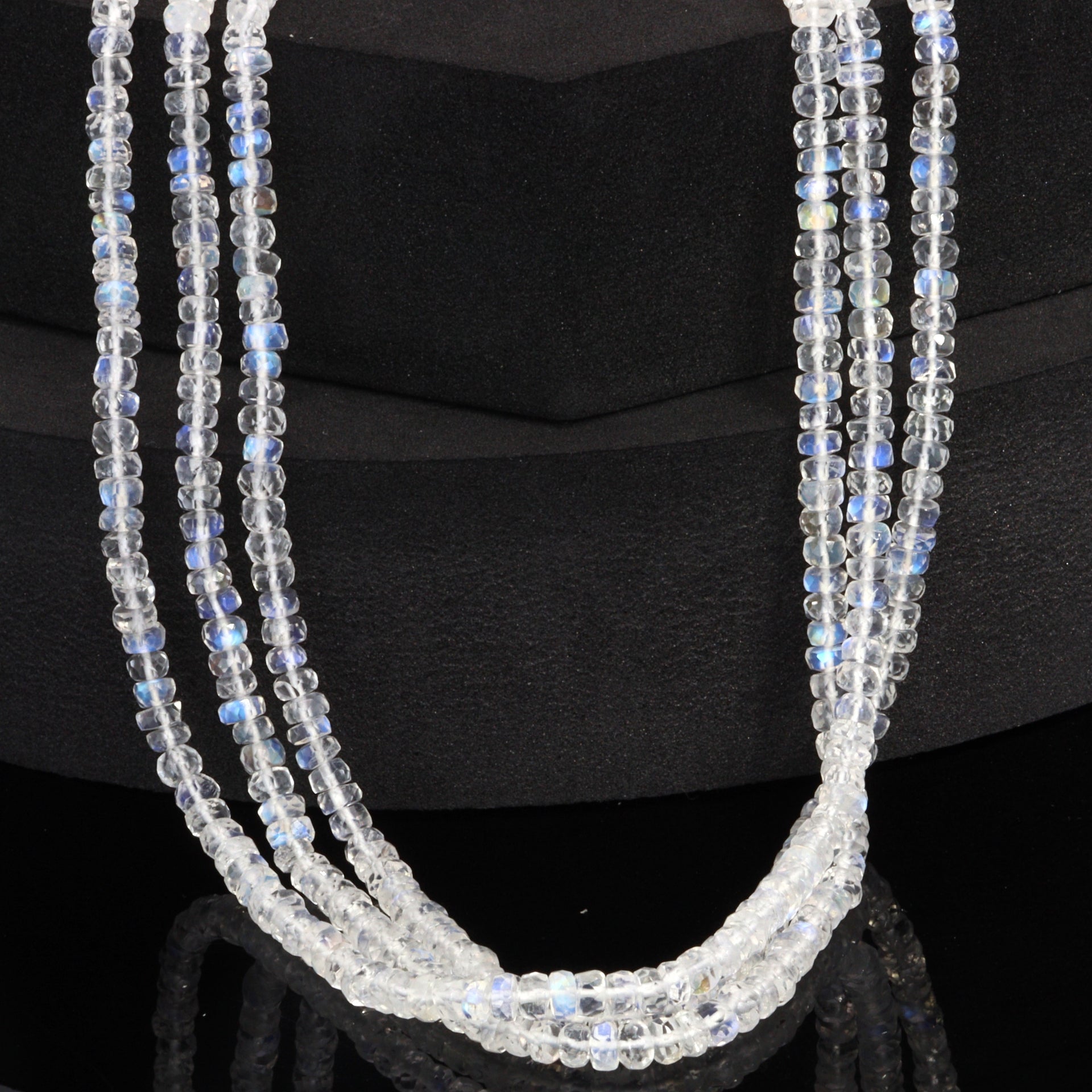 AAA Blue Rainbow Moonstone 3.5mm Hand Faceted Rondelles Bead Strand