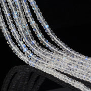 AAA Blue Rainbow Moonstone 4mm Hand Faceted Rondelles Bead Strand