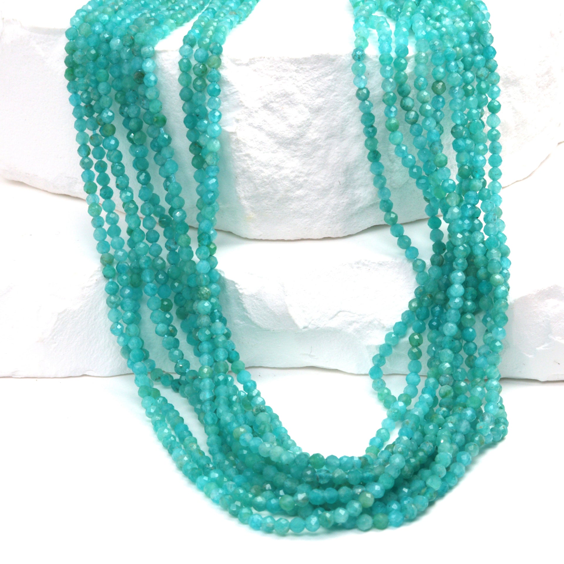 Blue Amazonite 2mm Faceted Rounds Bead Strand