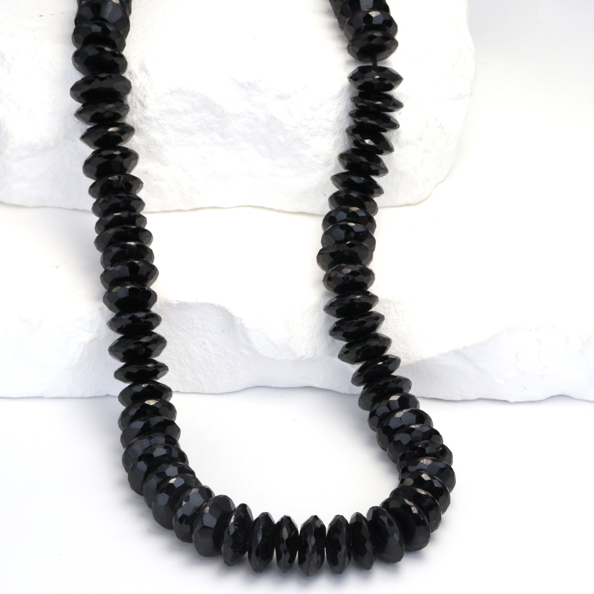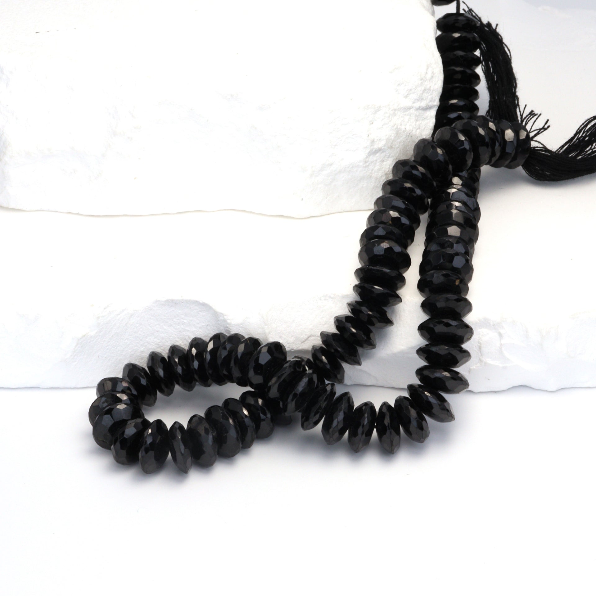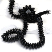 Black Spinel 10mm German Cut Faceted Rondelles Bead Strand