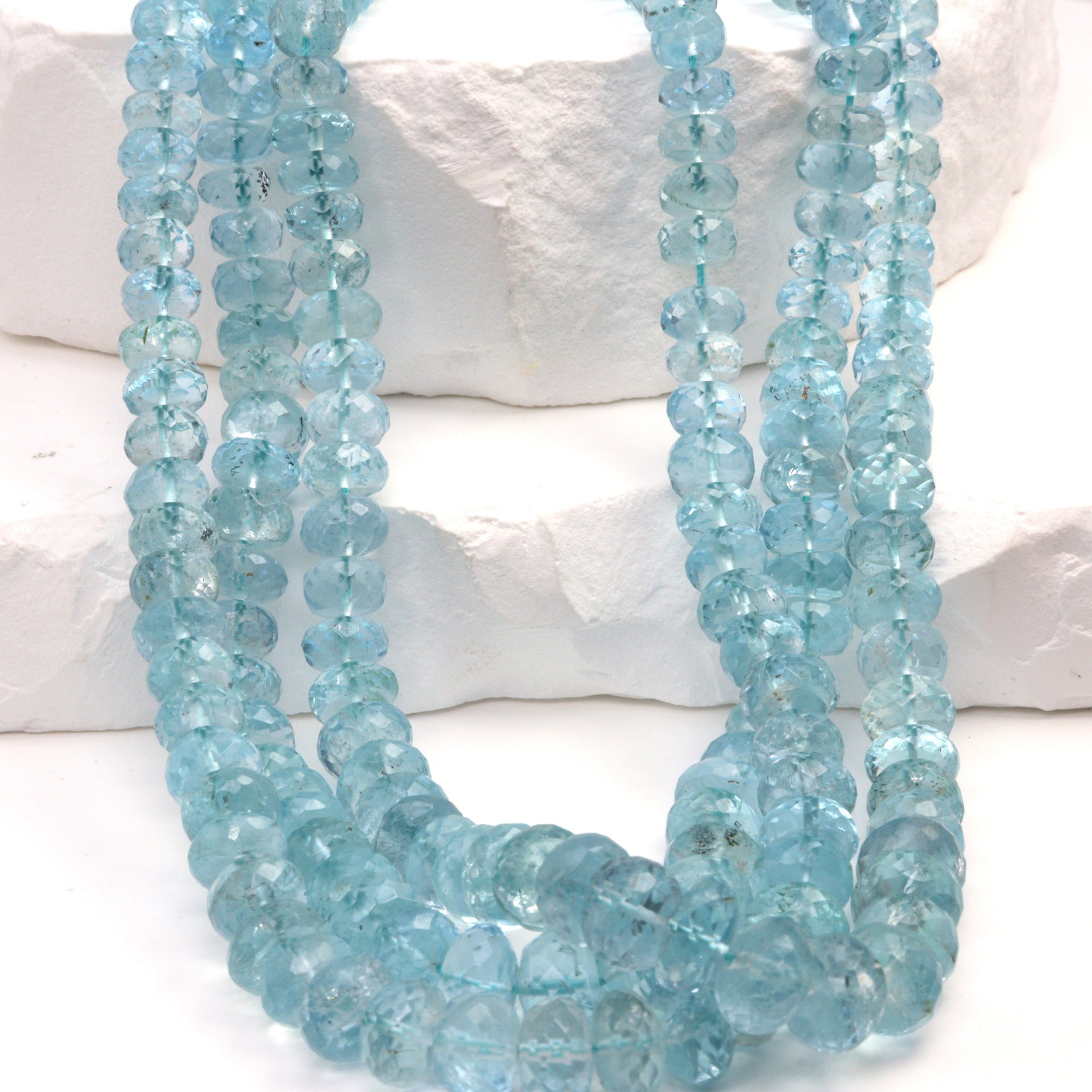 Blue Aquamarine 5.5mm - 7.5mm Faceted Rondelles Bead Strand