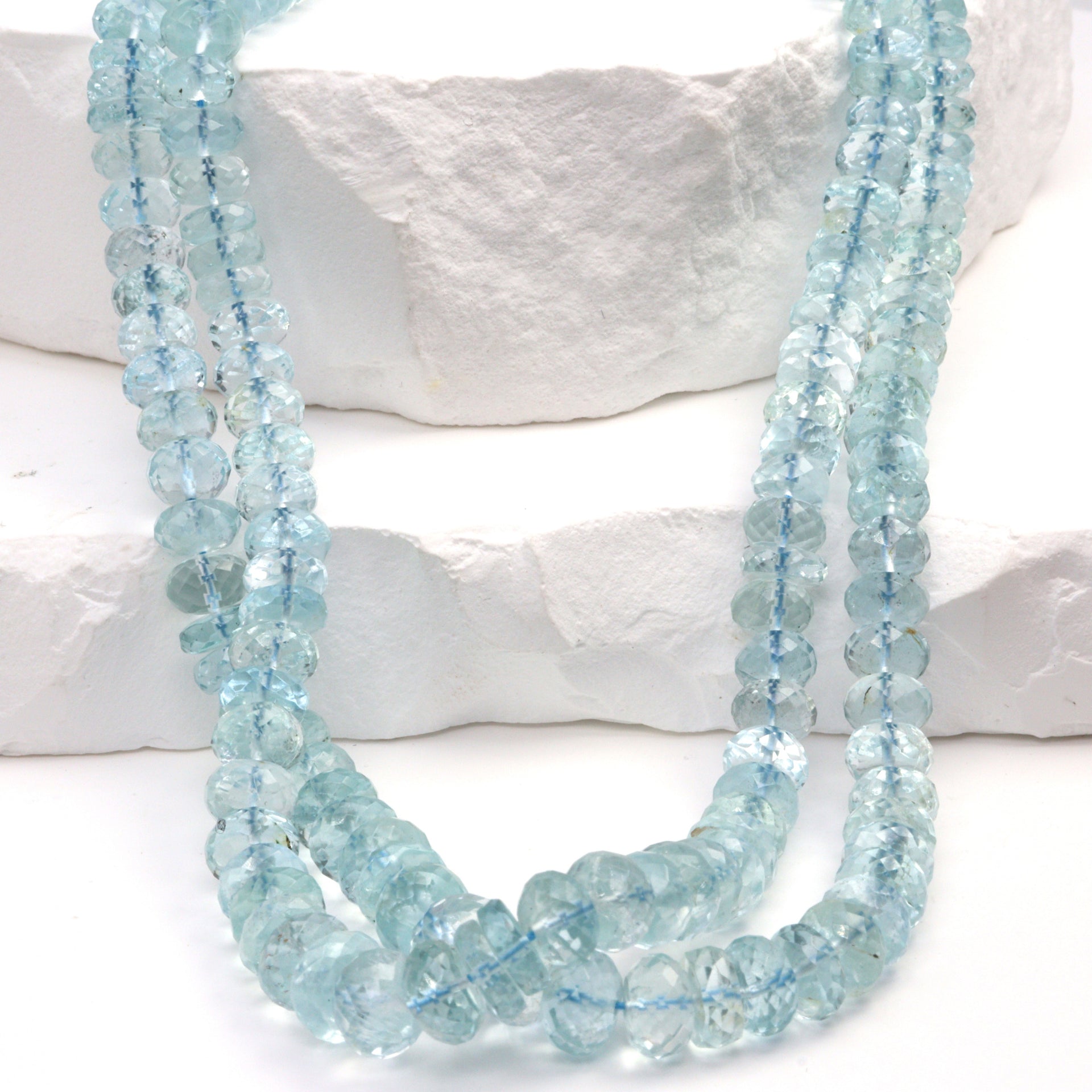 Blue Aquamarine 6mm - 7mm Faceted Rondelles Bead Strand
