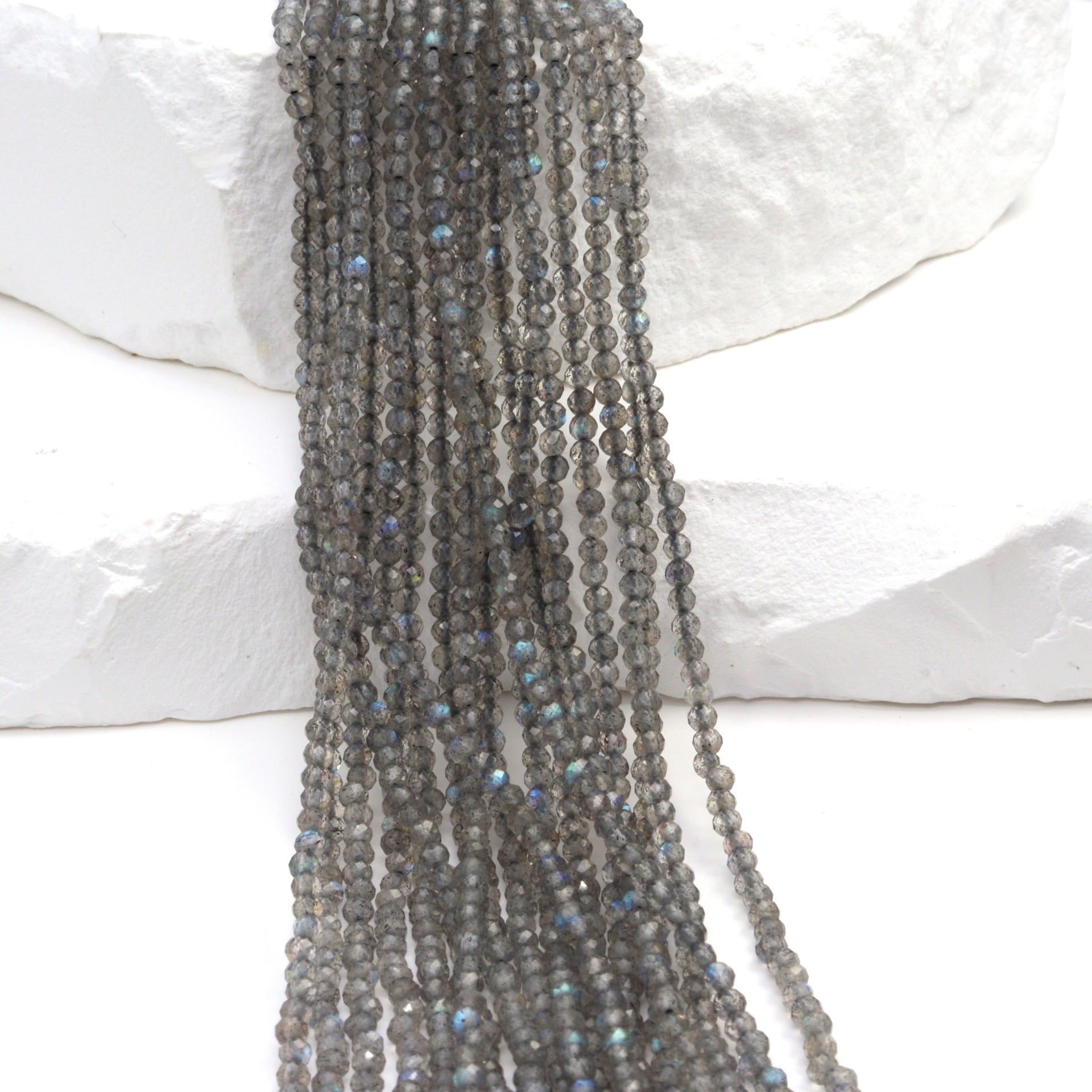 Blue Labradorite 2mm Faceted Rounds Bead Strand