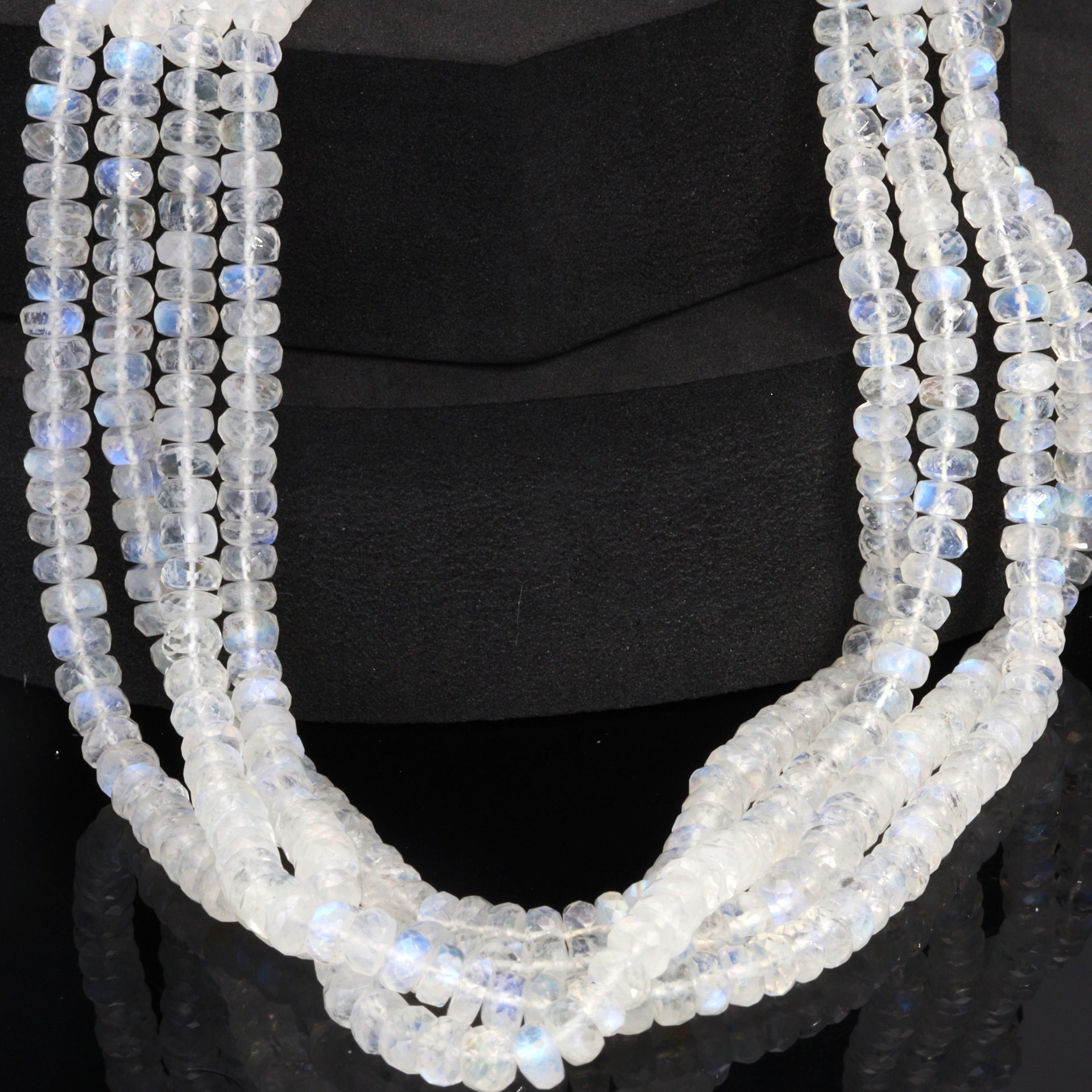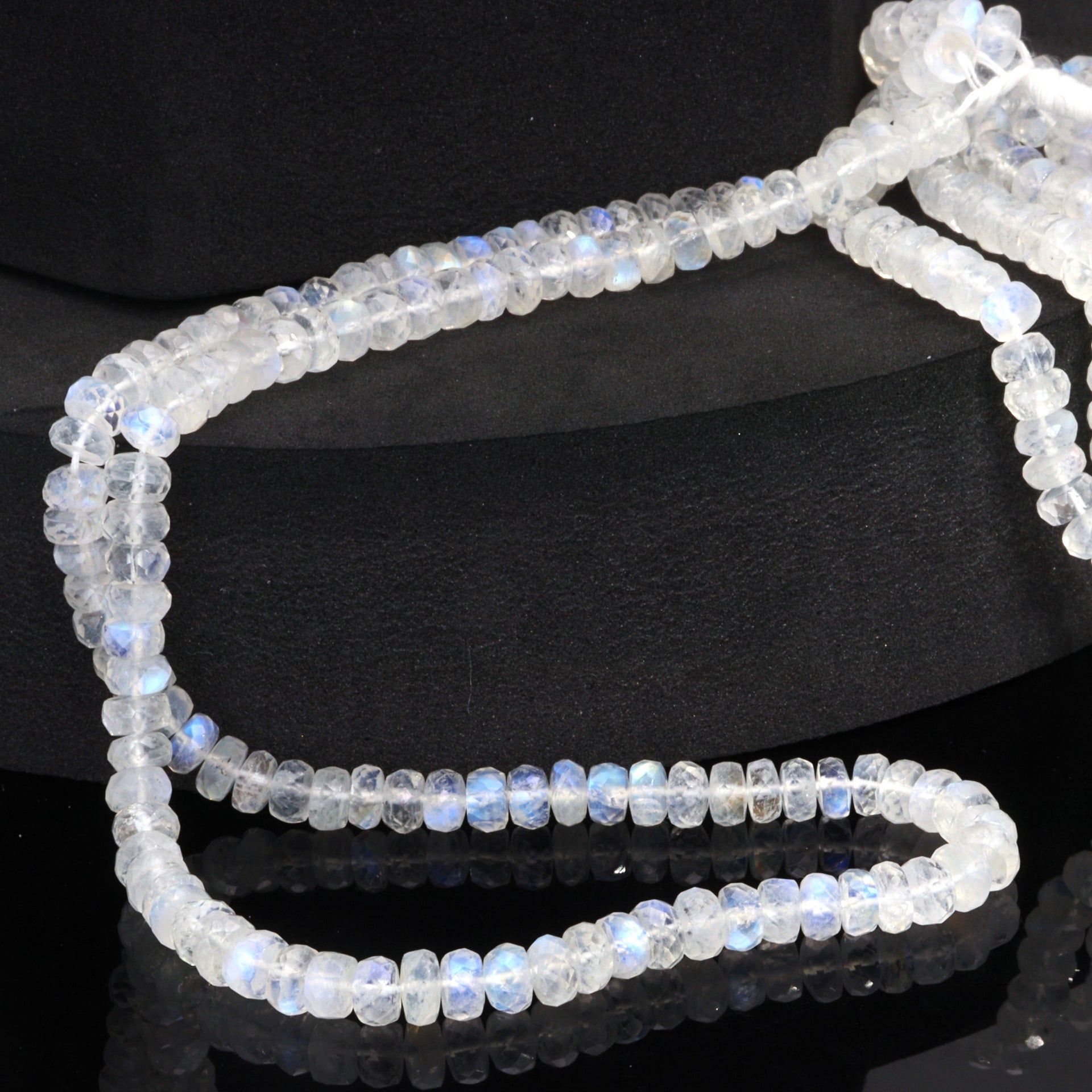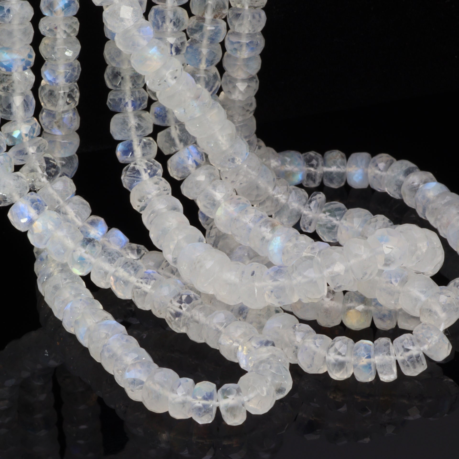 Blue Rainbow Moonstone 5mm Faceted Rondelles Bead Strand