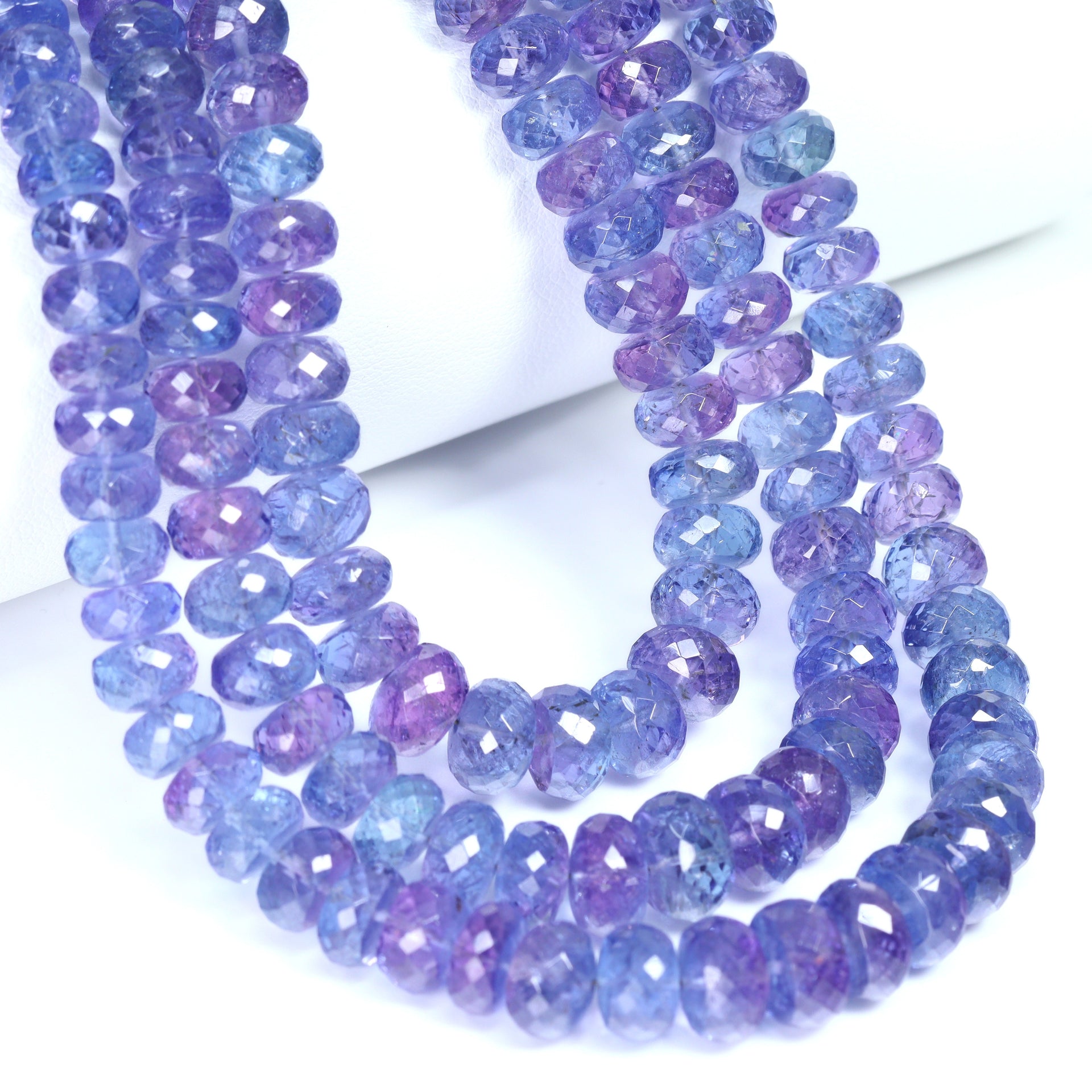Blue Tanzanite 6mm – 8.5mm Faceted Rondelles 3 Strand Bead Necklace