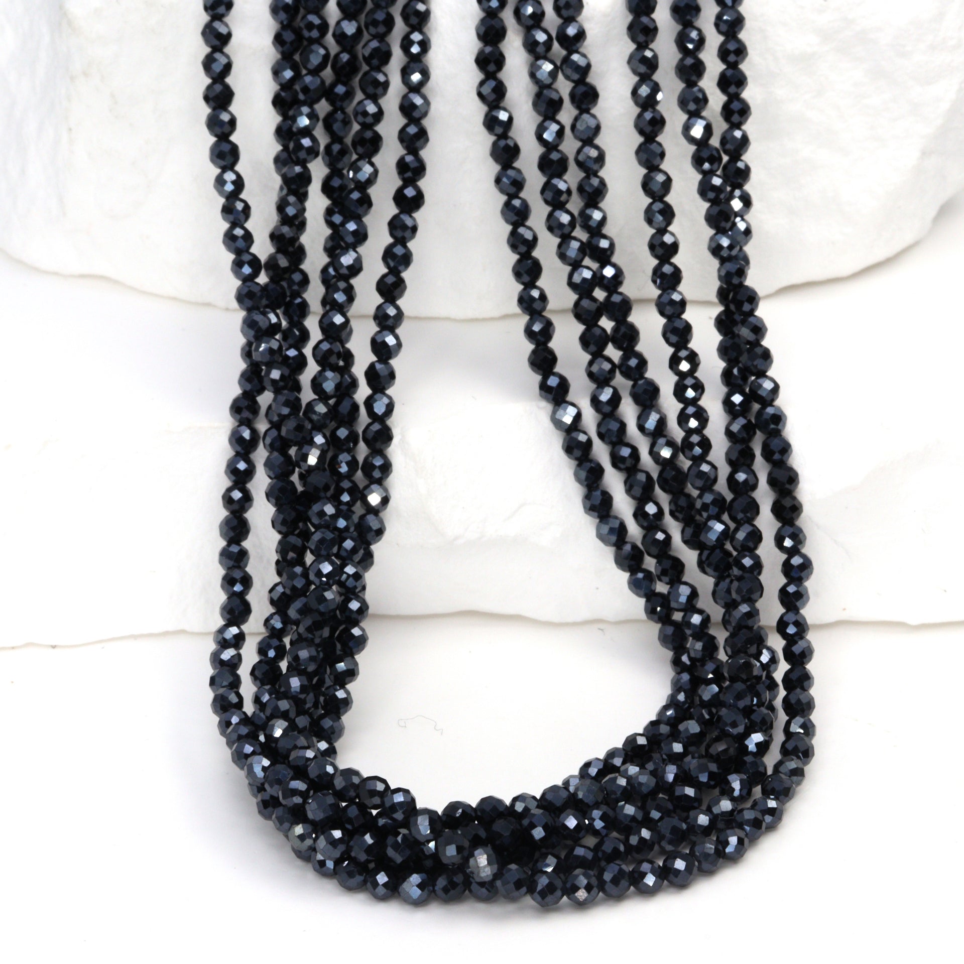 Coated Black Spinel 2.5mm Faceted Rounds Bead Strand