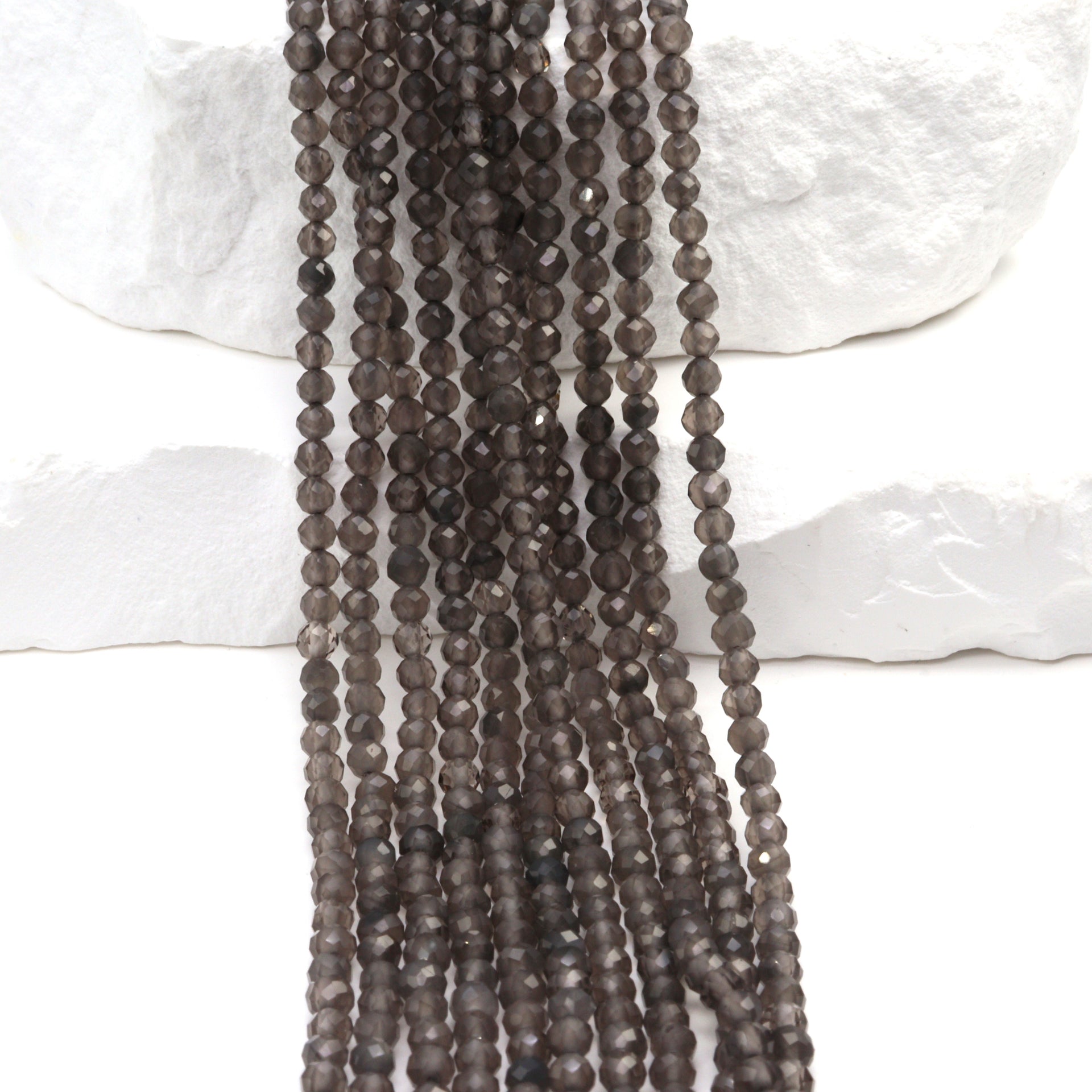 Gray Agate 3mm Faceted Rounds Bead Strand