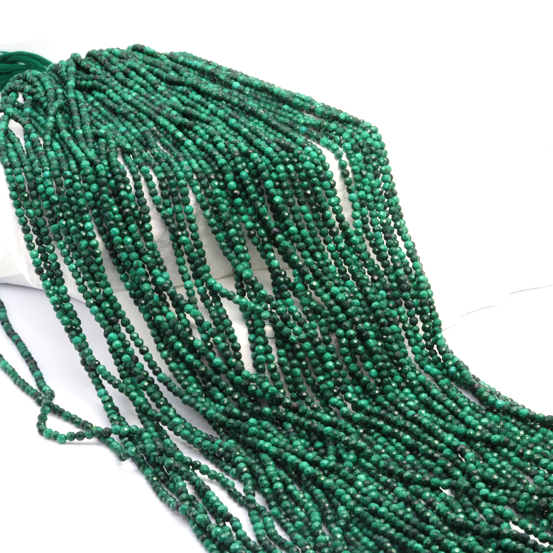 Green Malachite 2.5mm Faceted Rounds Bead Strand