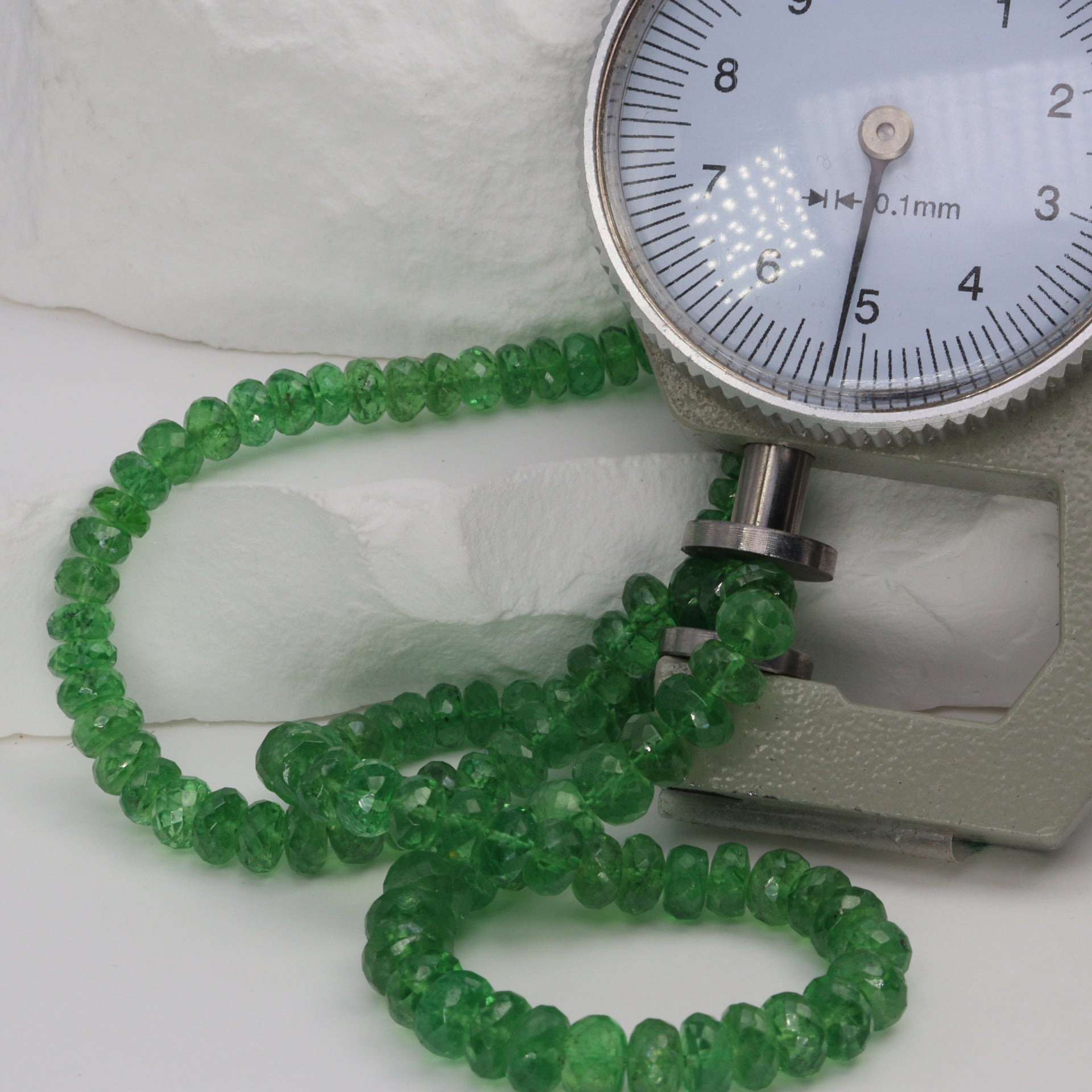 Green Tsavorite 4mm Hand Faceted Rondelles Bead Strand