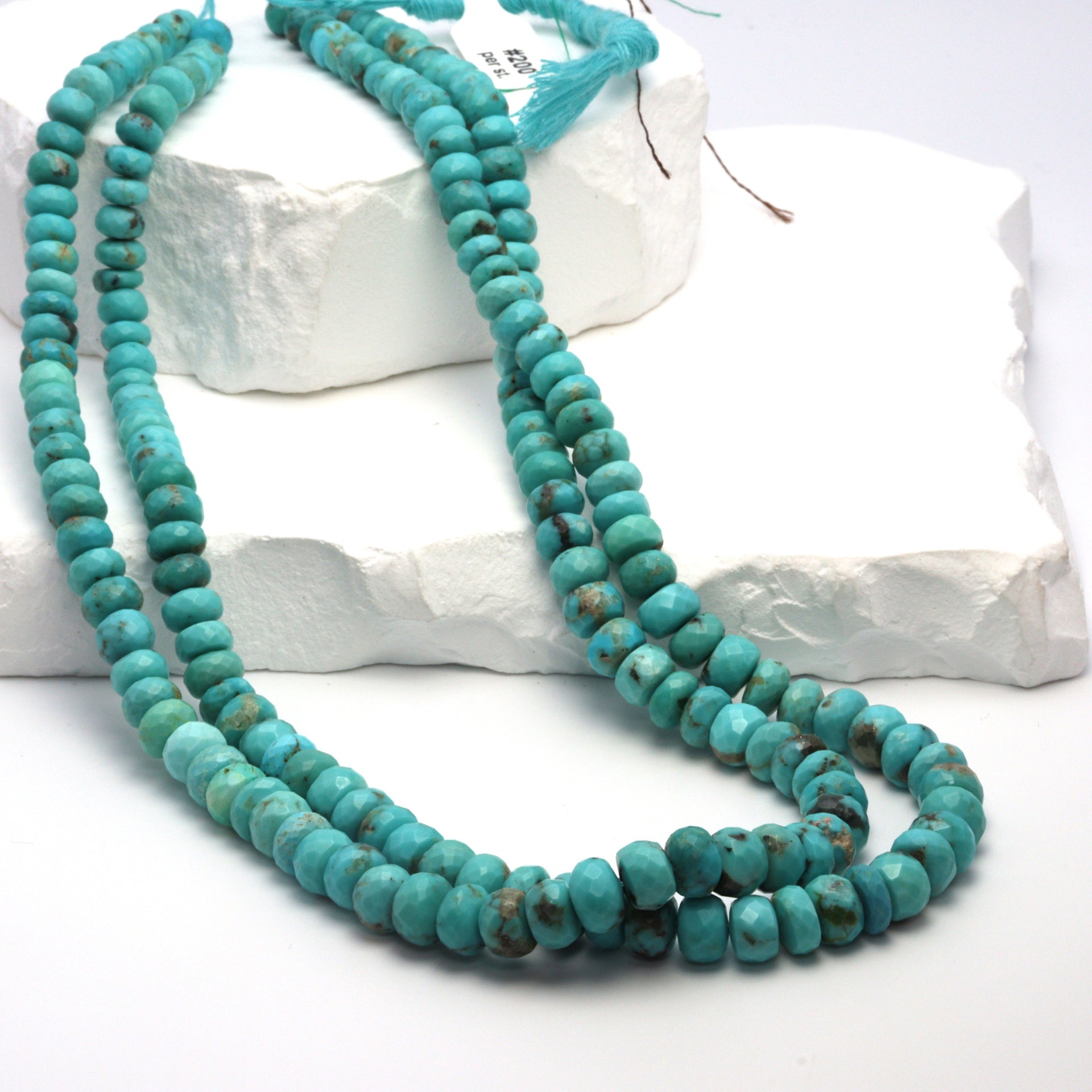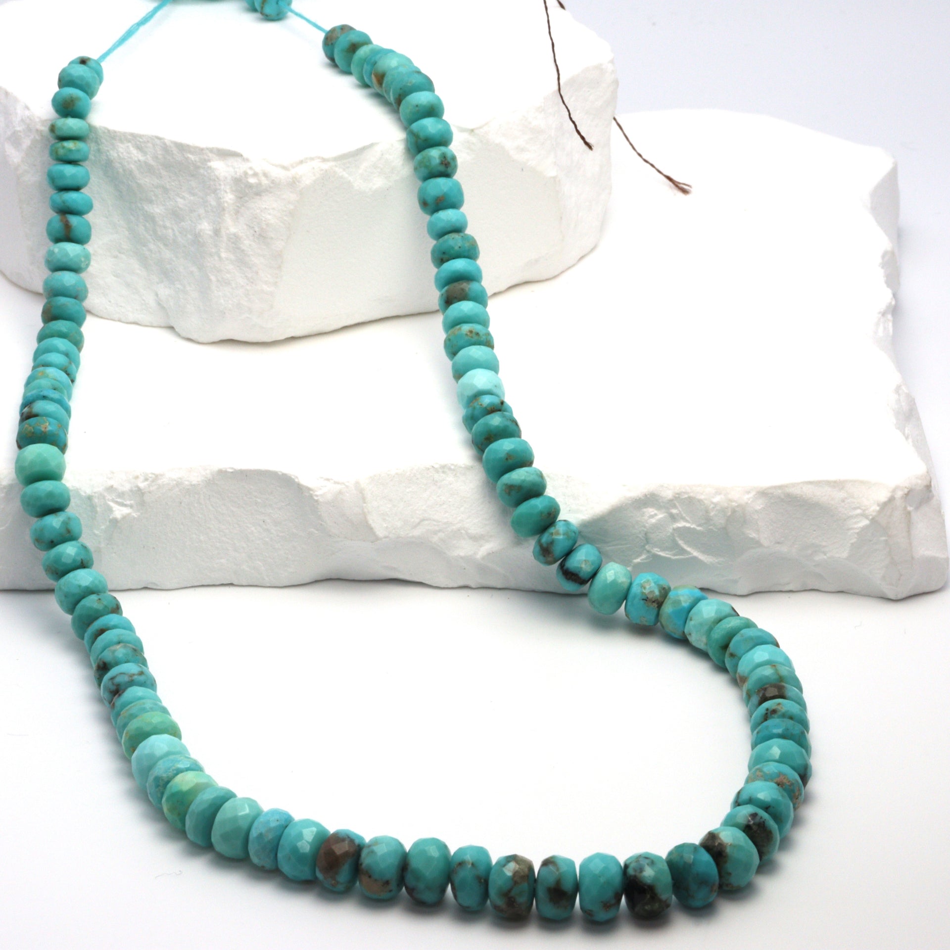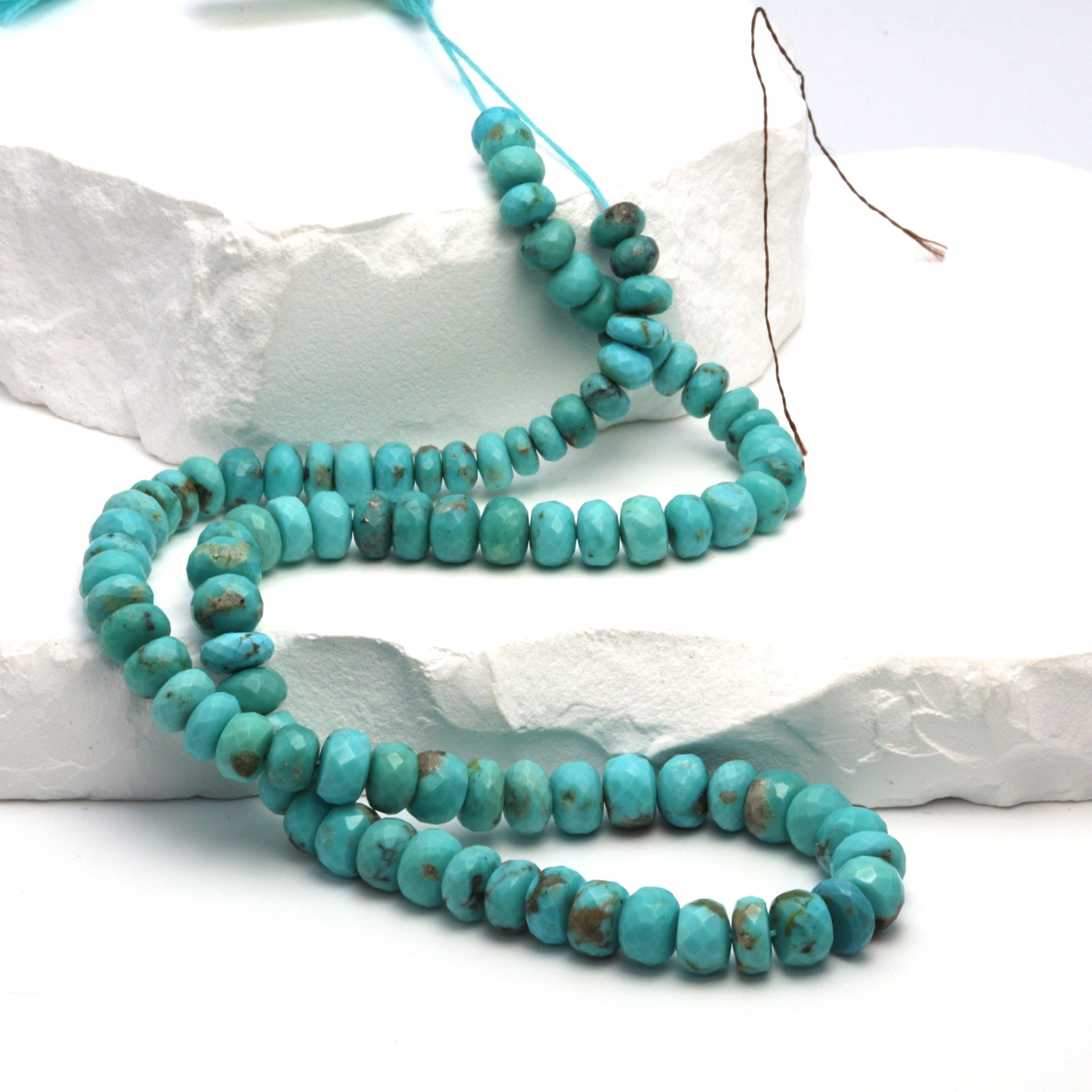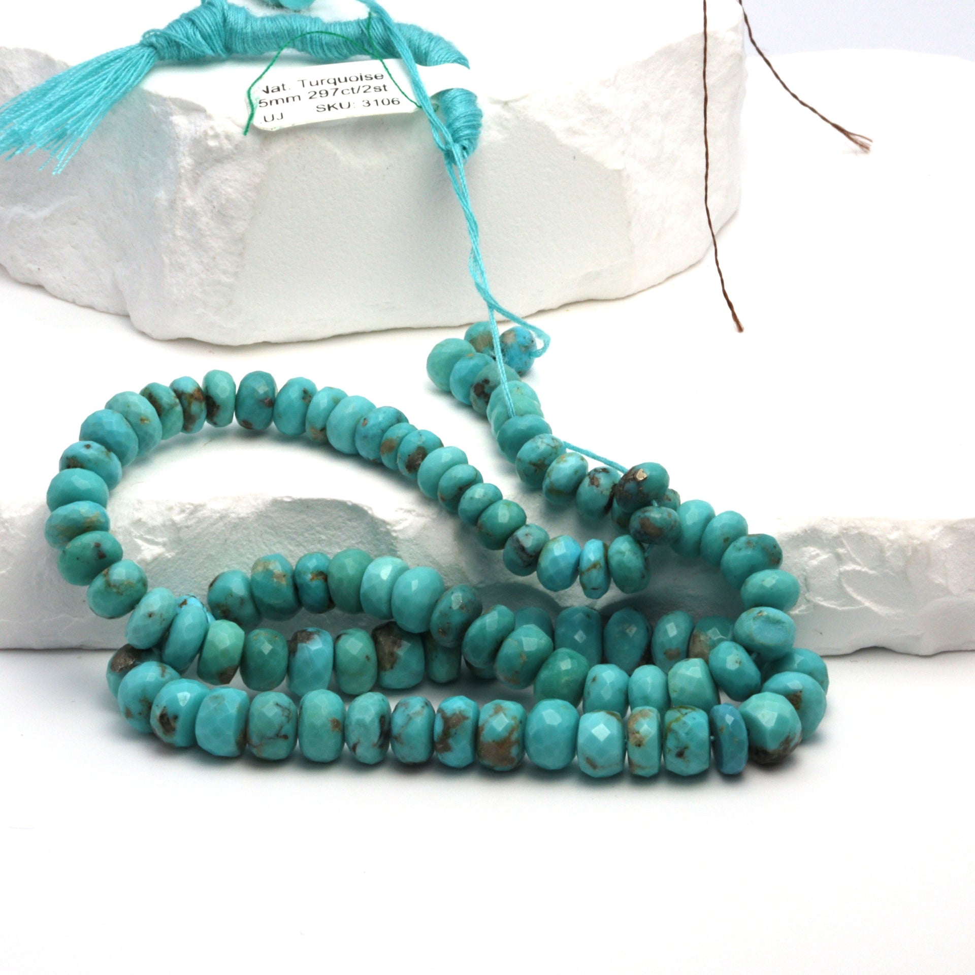 Natural Light Blue Turquoise 5mm - 7mm Faceted Rondelles Bead Strand