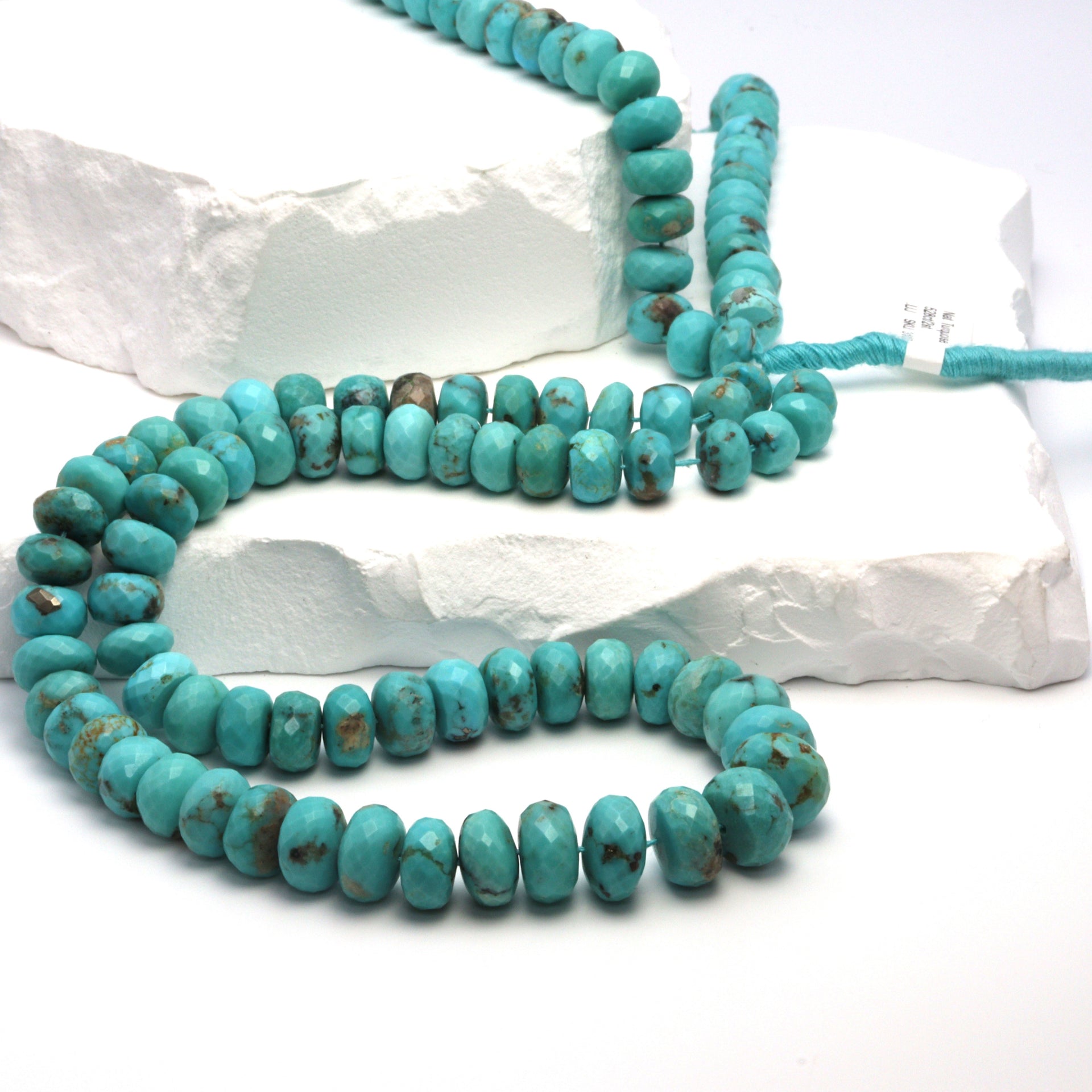 Natural Light Blue Turquoise 9mm - 11mm Faceted Rondelles Bead Strand