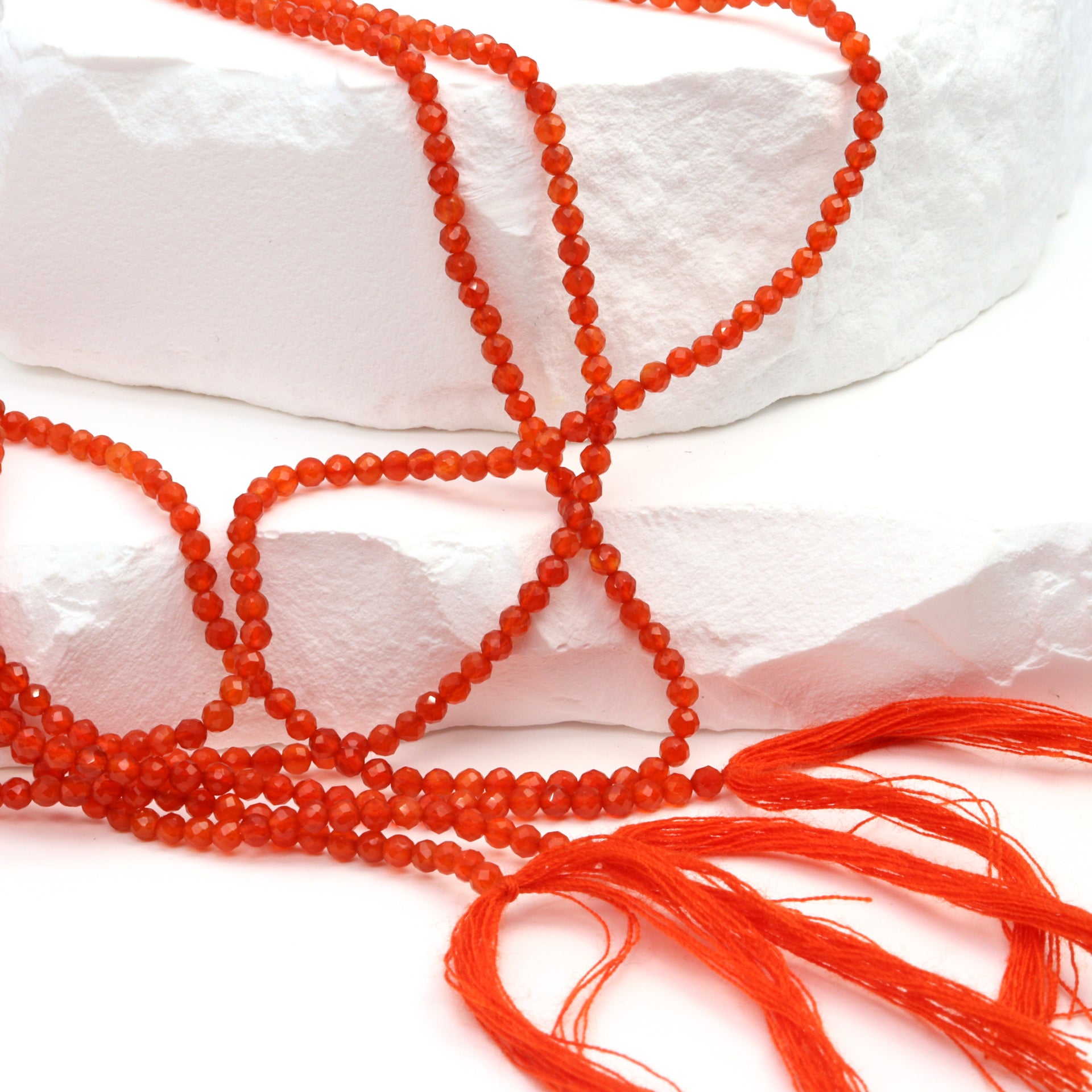 Orange Carnelian 2.5mm Faceted Rounds Bead Strand