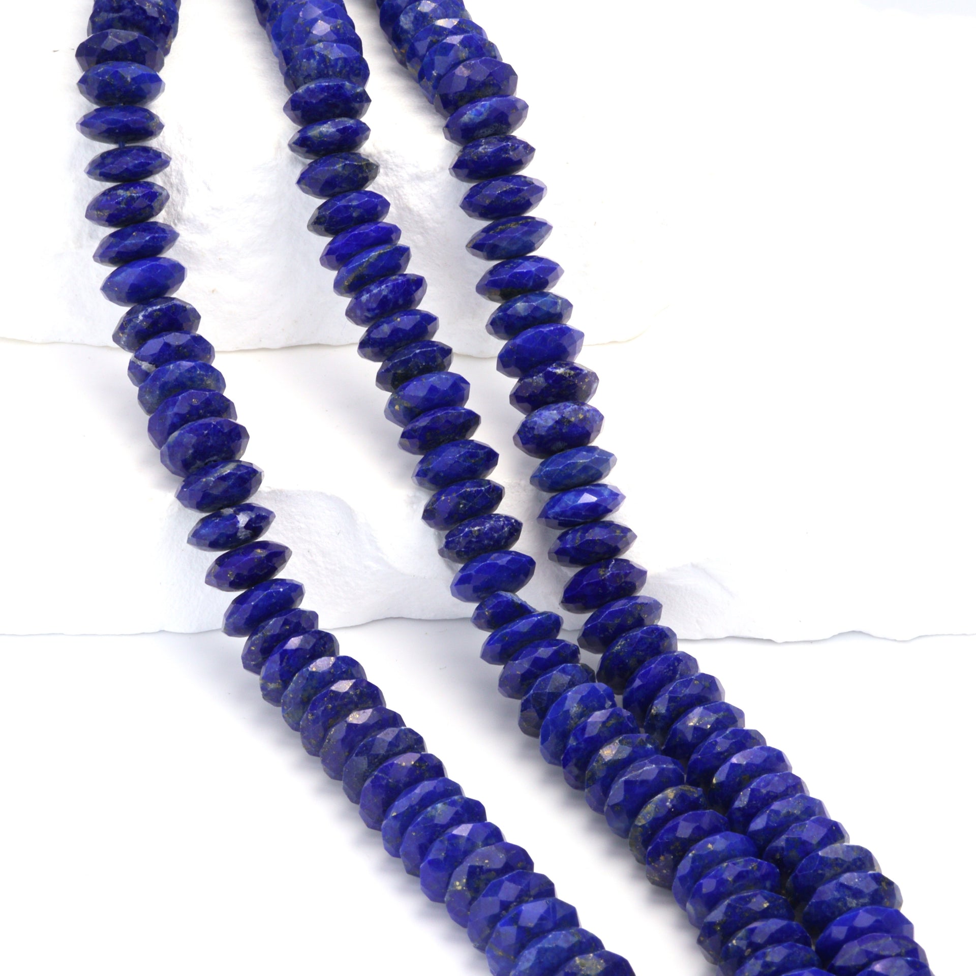Royal Blue Lapis Lazuli 10mm German Cut Faceted Rondelles Bead Strand