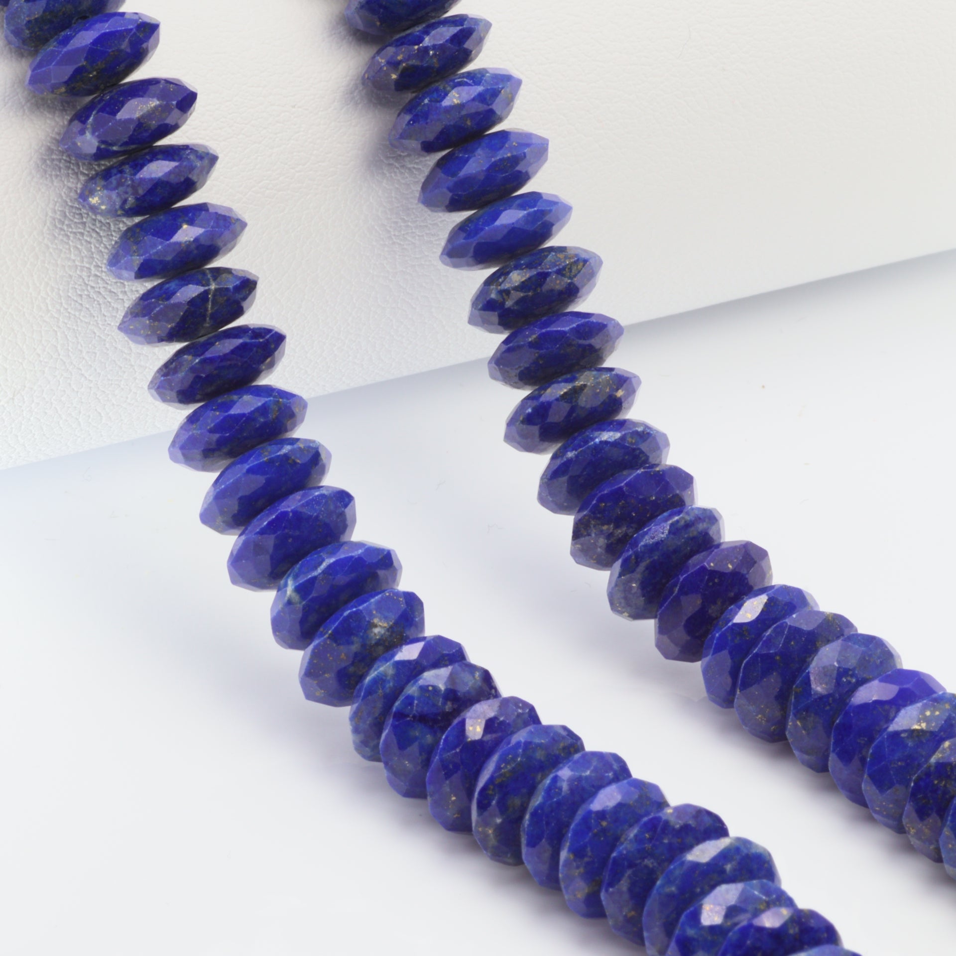Royal Blue Lapis Lazuli 10mm German Cut Faceted Rondelles Bead Strand