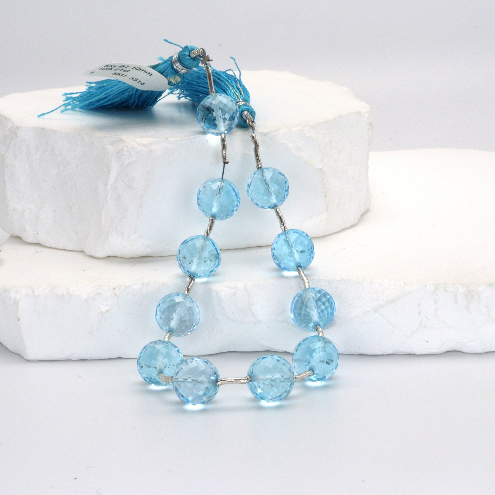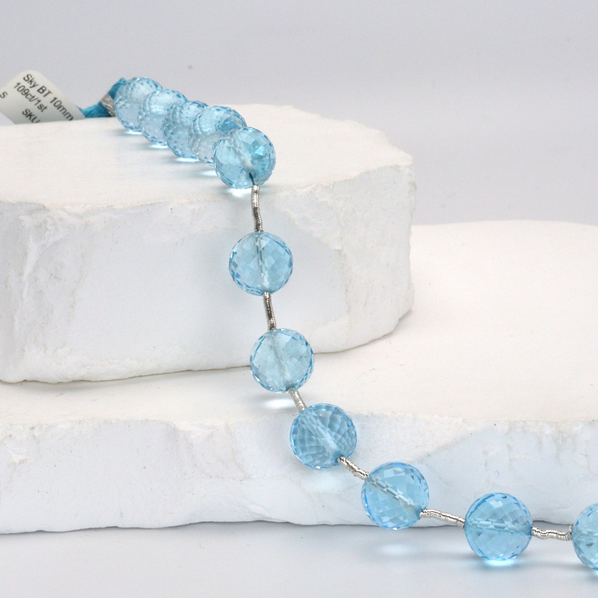 Sky Blue Topaz 10mm Faceted Rounds Bead Strand