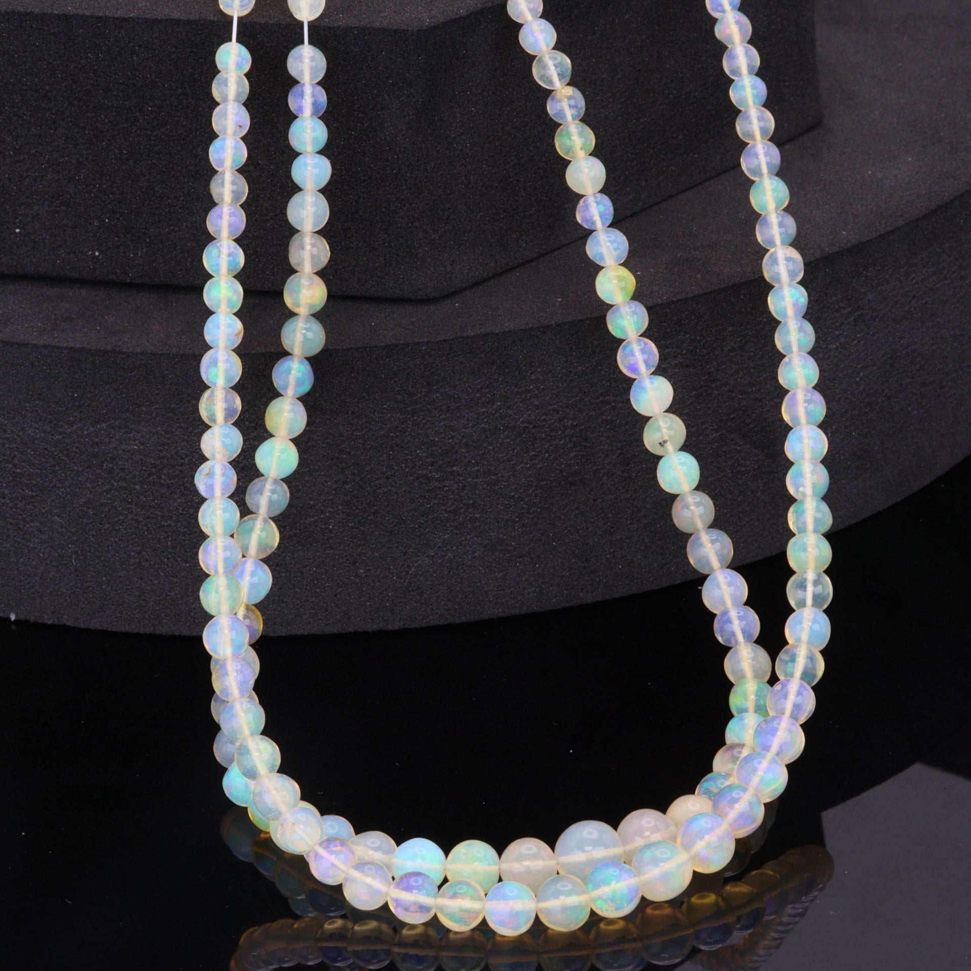 Warm White Ethiopian Opal 4mm - 5.5mm Smooth Rounds Bead Strand
