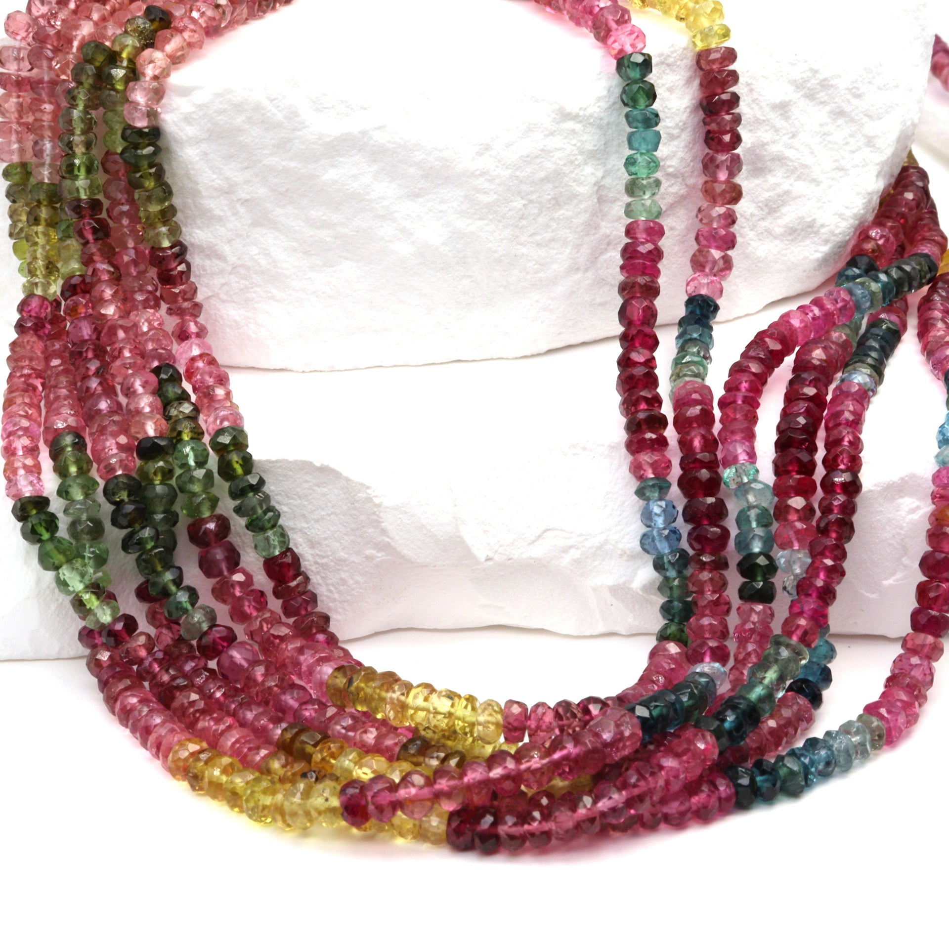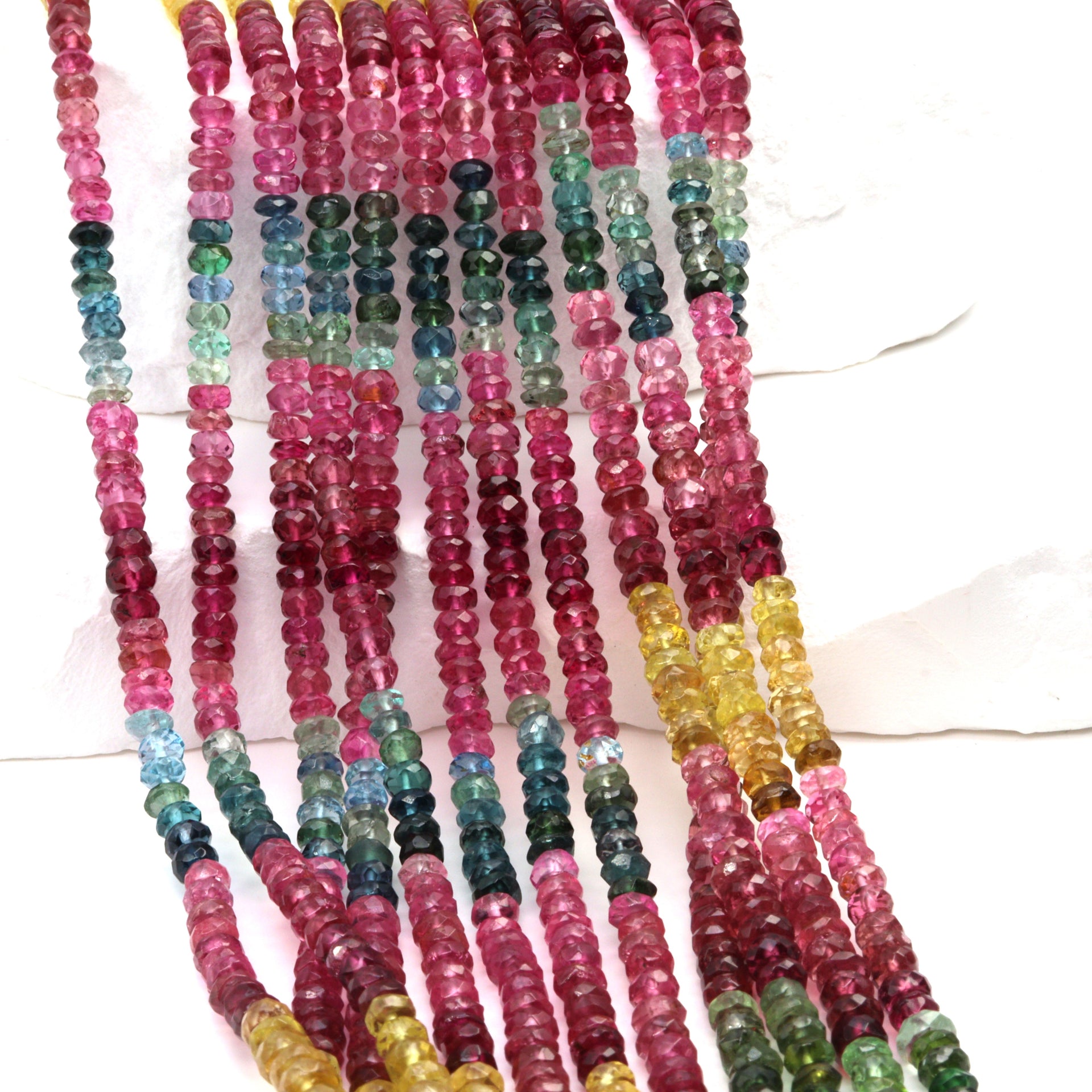 Watermelon Tourmaline 3.5mm Hand Faceted Rondelles Bead Strand