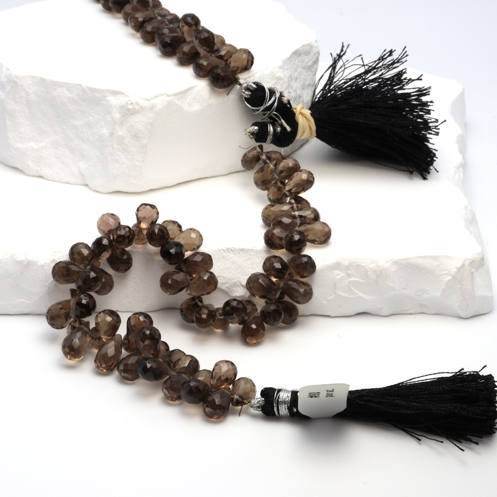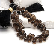 Brown Smoky Quartz 10x6mm Faceted Teardrop Briolettes Bead Strand
