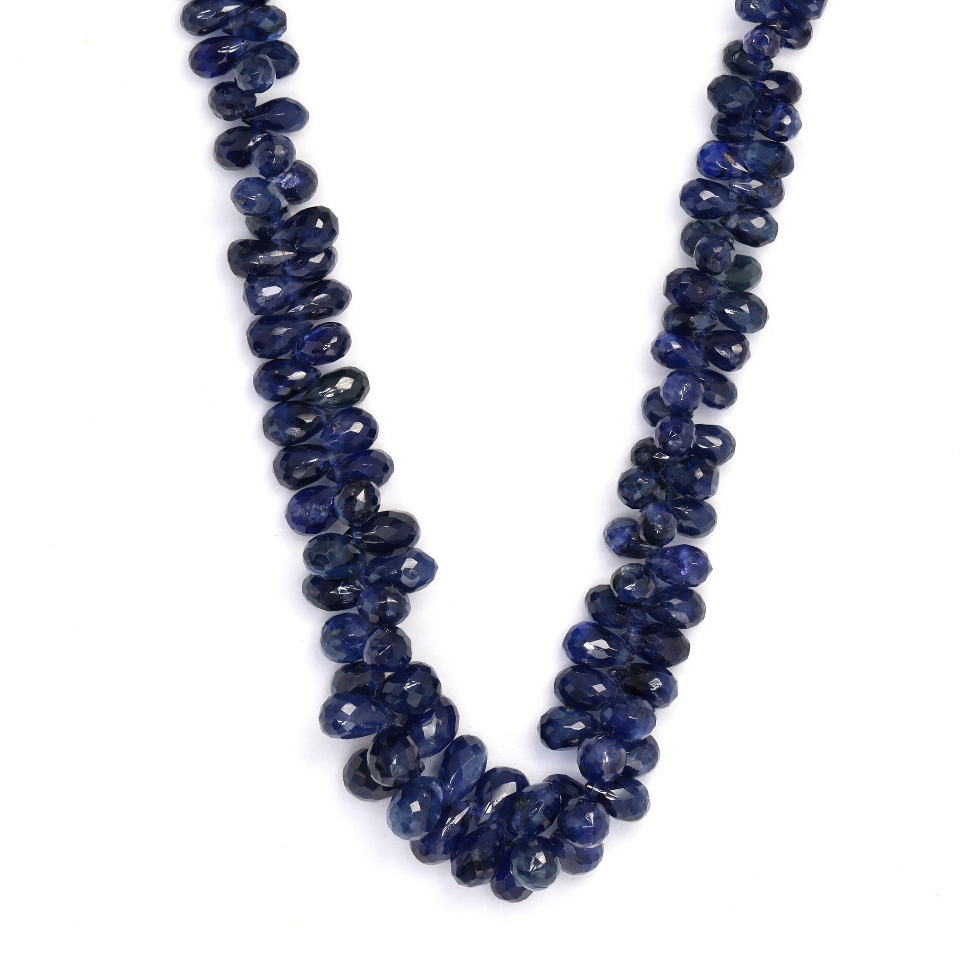 Discover the exquisite beauty of our 16" Full Bead Strand of Navy Blue Sapphire Faceted Teardrop Briolettes. Each bead, meticulously cut into a 3x5mm teardrop shape, showcases the deep, rich hues of navy blue sapphire, adding a touch of elegance and sophistication to any jewelry design. These gemstone beads are perfect for creating stunning necklaces, bracelets, and earrings that will captivate your customers. As a trusted gemstone wholesaler, we ensure that every bead strand we supply is of the highest quality, promising durability and long-lasting beauty. Elevate your jewelry designs with the timeless allure of our navy blue sapphire beads.