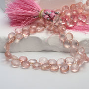 Pink Rose Quartz 8mm Faceted Heart Shaped Briolettes Bead Strand