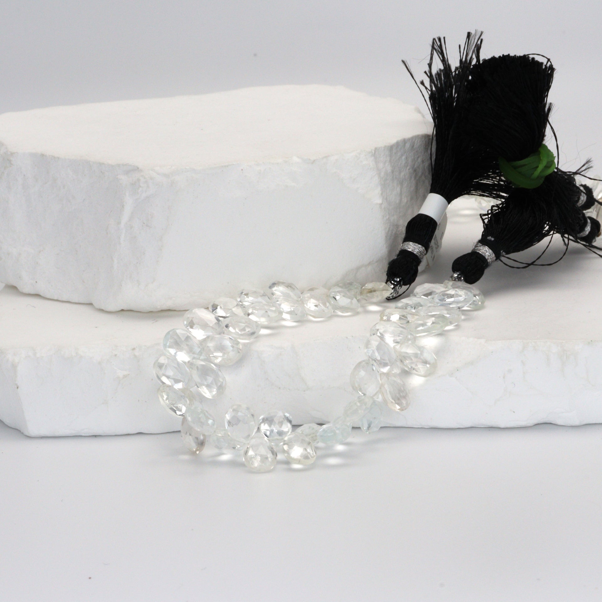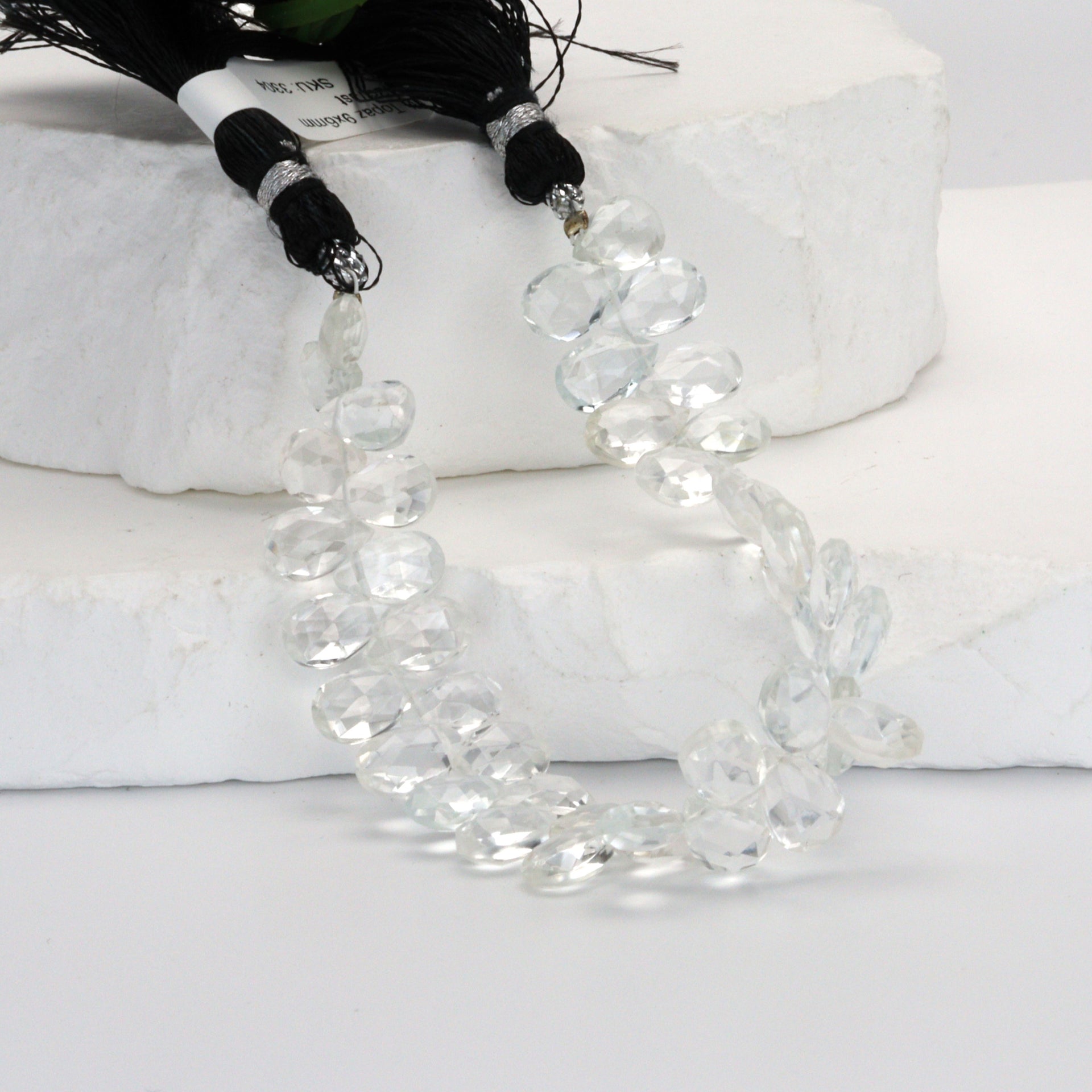 White Topaz 9x6mm Faceted Pear Shaped Briolettes Bead Strand