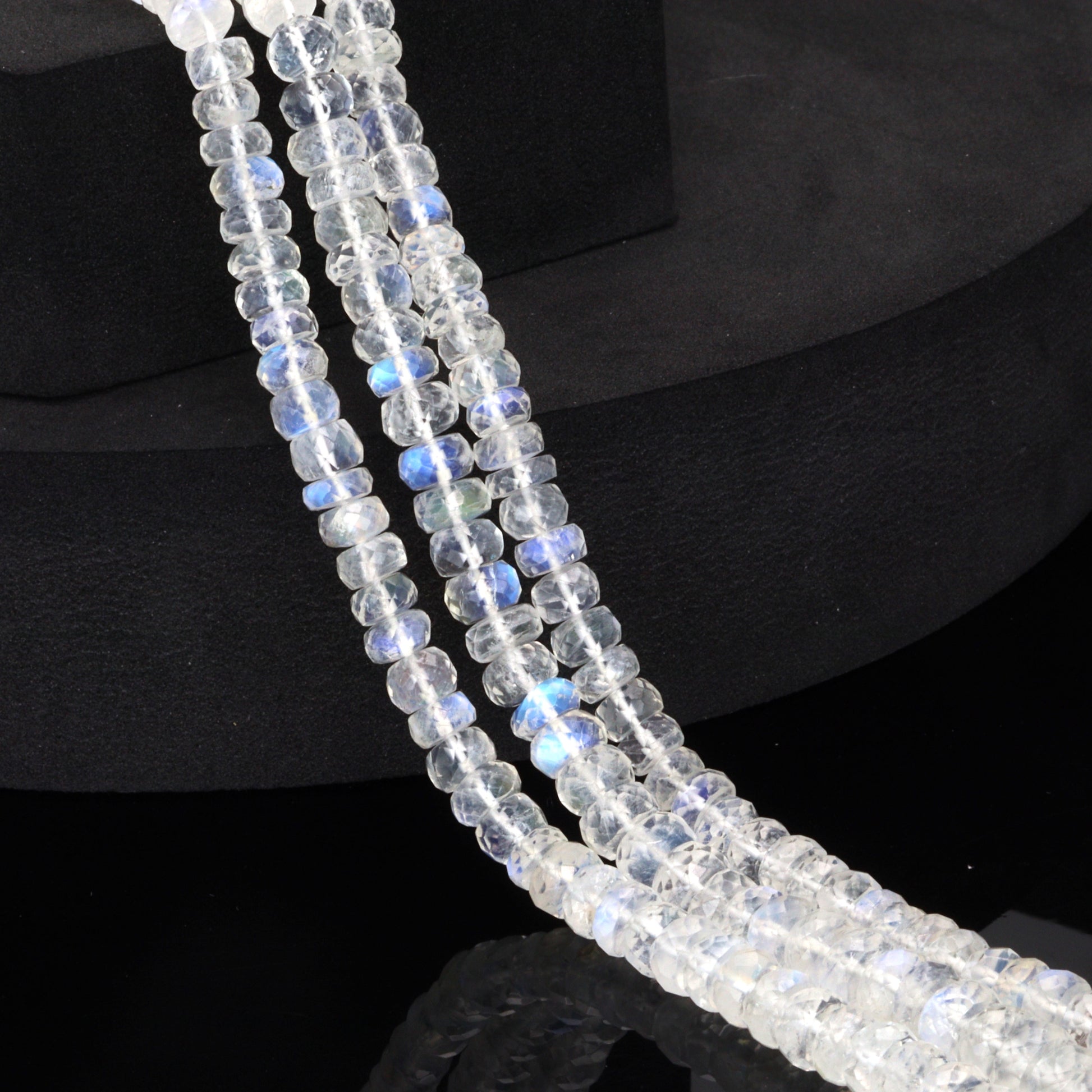 AA Blue Rainbow Moonstone 6mm Faceted Rondelles Bead Strand