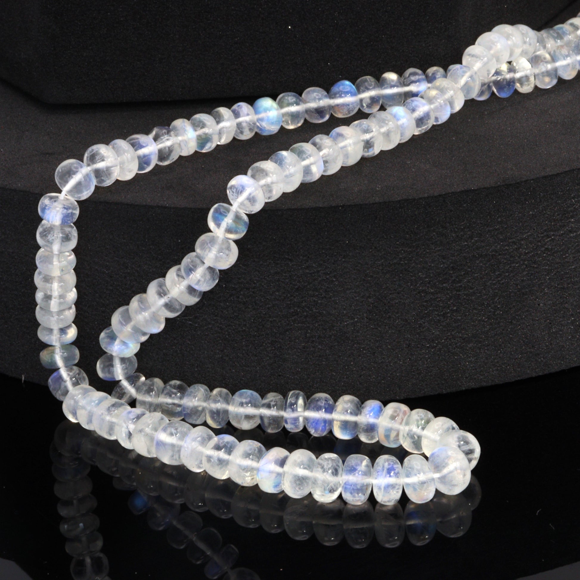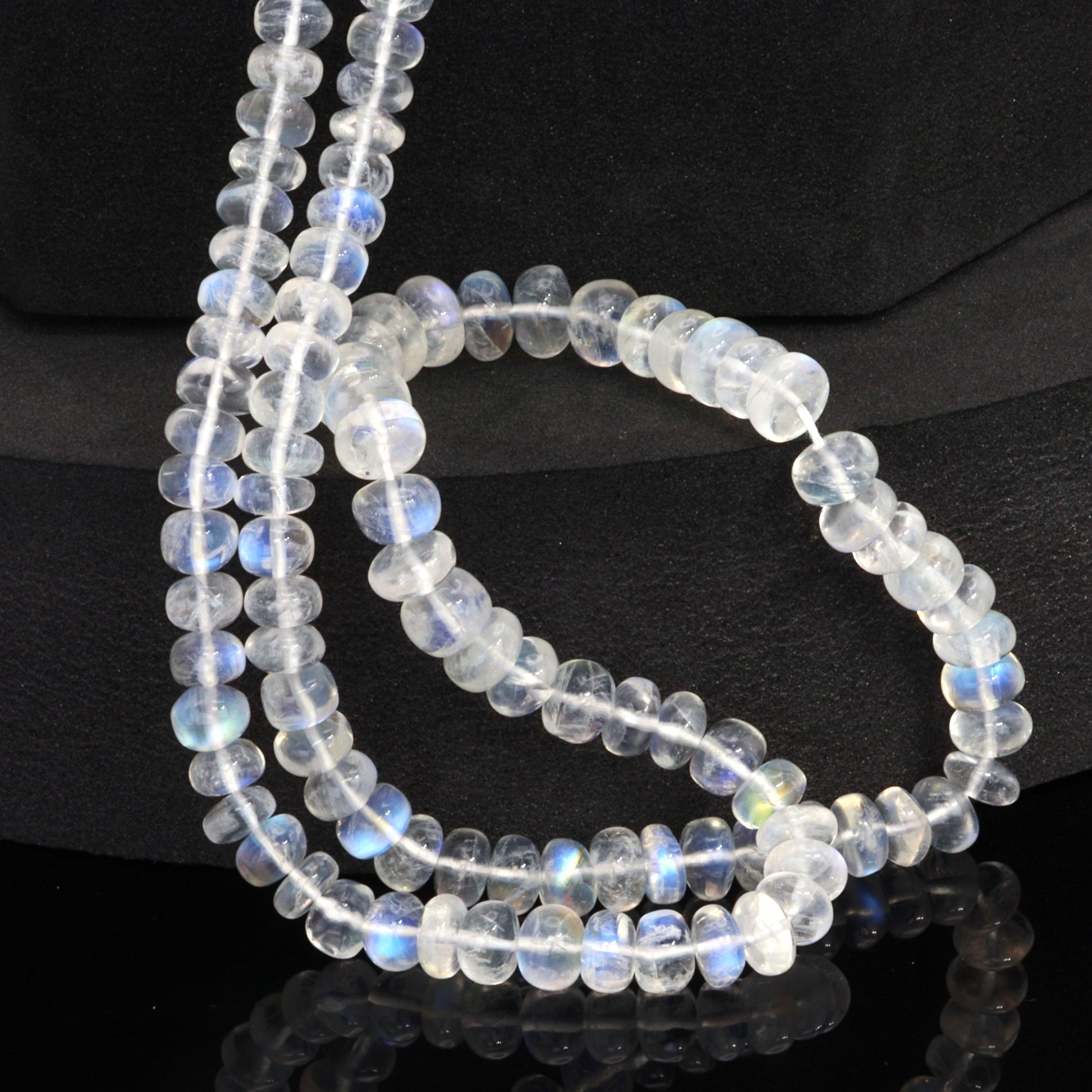 AA Blue Rainbow Moonstone 6mm - 7mm Smooth Rondelles Bead Strand